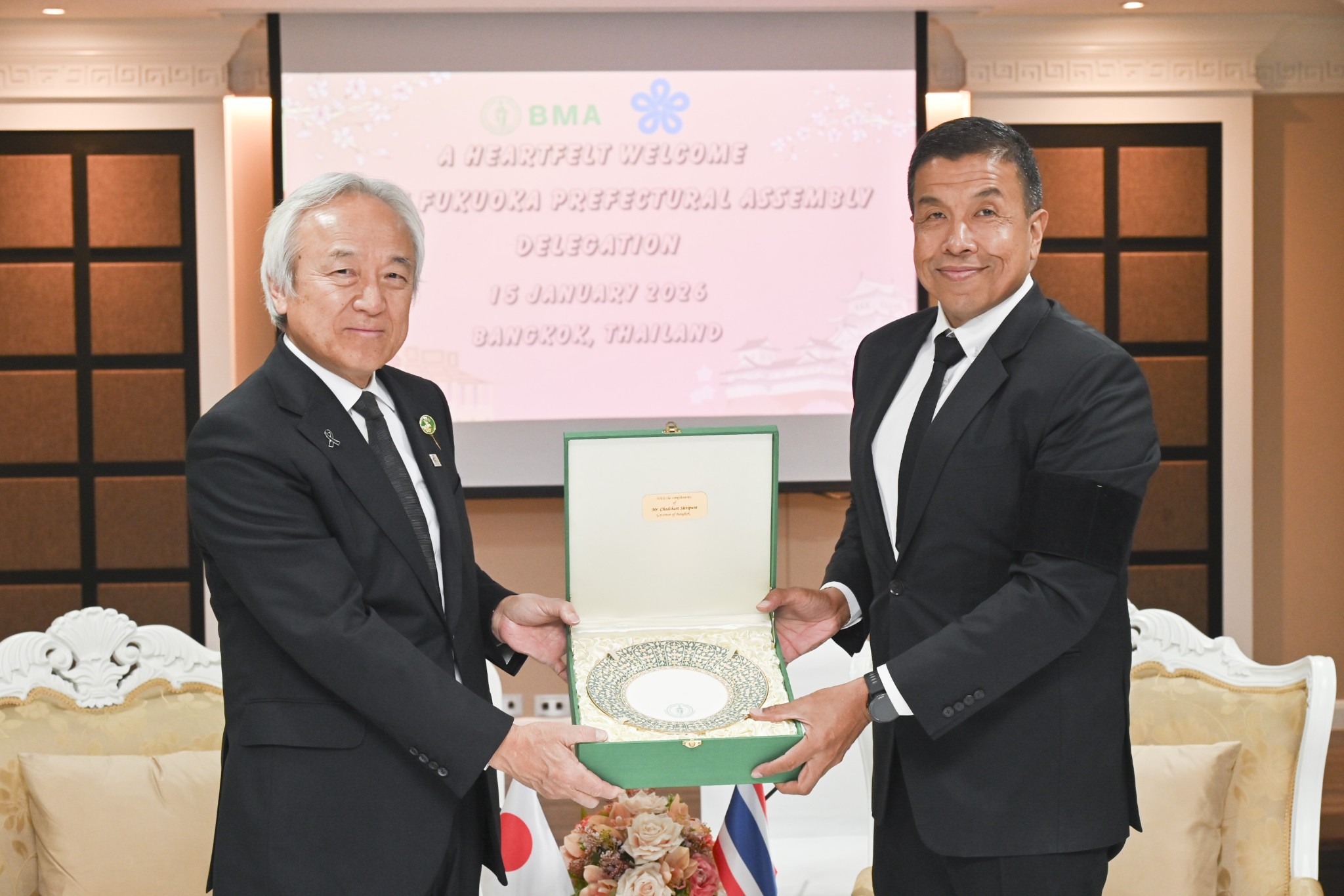 15 มกราคม 2569 - คณะผู้แทนจากสภาจังหวัดฟุกุโอกะ ประเทศญี่ปุ่น นำโดย นายคูราอุจิ อิซามุ ประธานสภาจังหวัดฟุกุโอกะ ได้เข้าเยี่ยมคารวะผู้ว่าราชการกรุงเทพมหานครและคณะผู้บริหารกรุงเทพมหานคร เพื่อตอกย้ำความสัมพันธ์อันแน่นแฟ้นดุจเมืองพี่น้องและหารือแนวทางความร่วมมือในอนาคต
