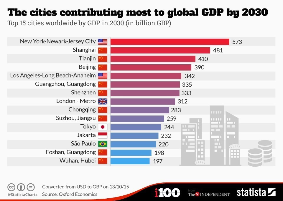 ในปี 2573 เมืองเซินเจิ้นคาดการณ์ว่าจะกลายเป็นประเทศที่มีส่วนร่วมต่อผลิตภัณฑ์มวลรวมภายในประเทศทั่วโลกใหญ่ที่สุดเป็นอันดับที่ 7
