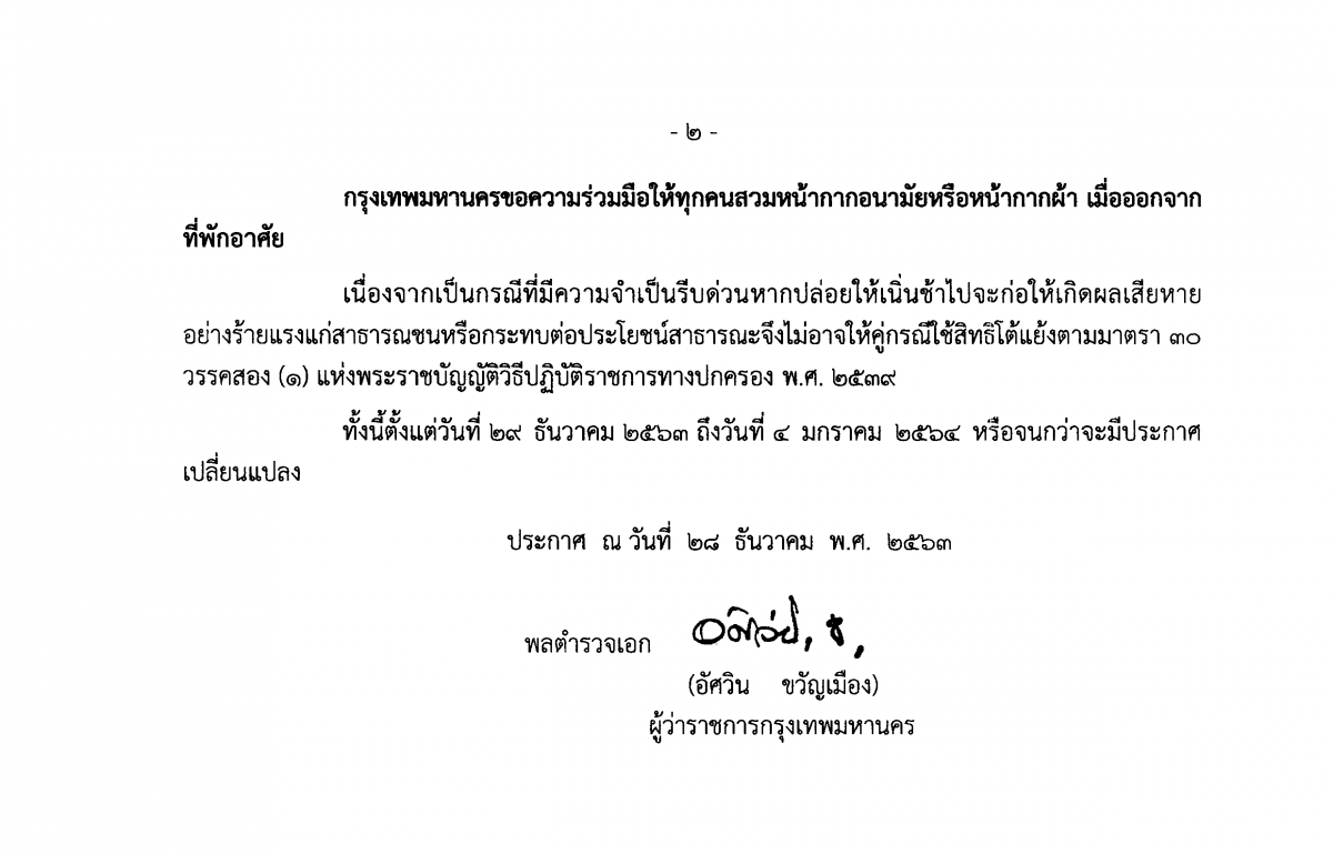 ตามที่ได้มีประกาศเรื่อง การขยายระยะเวลาการประกาศสถานการณ์ฉุกเฉินในทุกเขตท้องที่ทั่วราชอาณาจักร