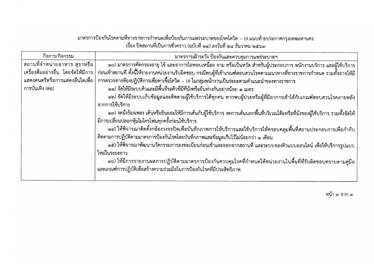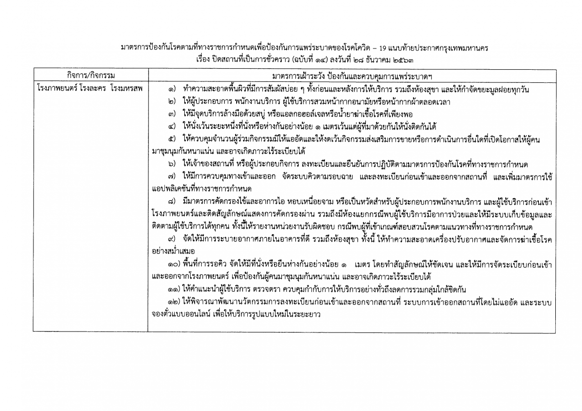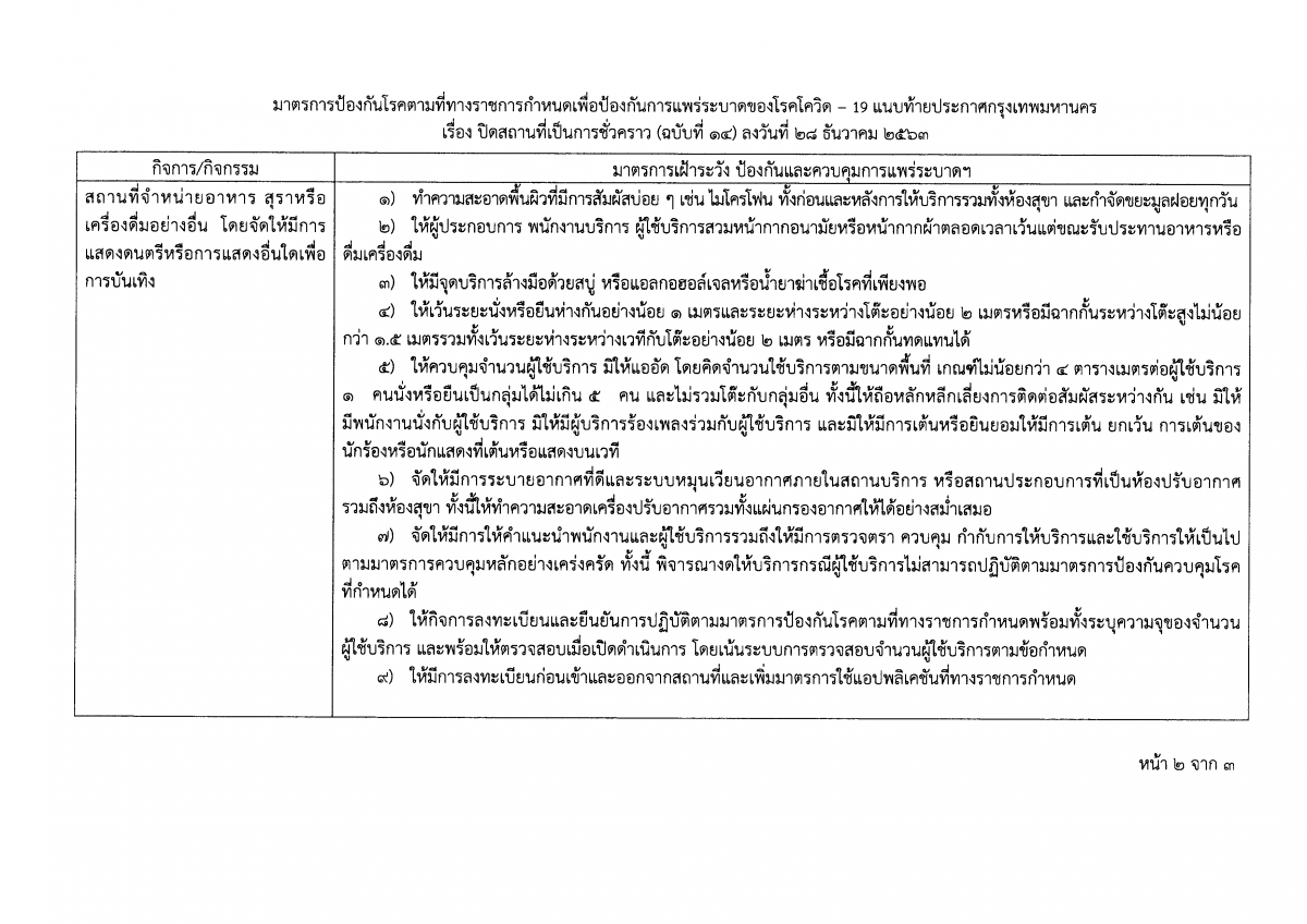 ประกาศกรุงเทพมหานคร เรื่อง สั่งปิดสถานที่เป็นการชั่วคราว (ฉบับที่ 14)