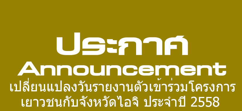 ประกาศเปลี่ยนแปลงวันรายงานตัวเข้าร่วมโครงการแลกเปลี่ยนเยาวชนกับจังหวัดไอจิ ประจำปี 2558