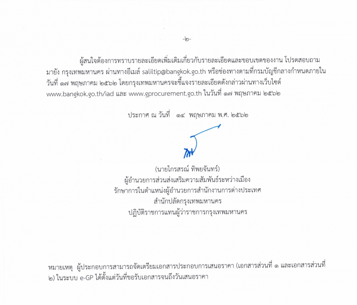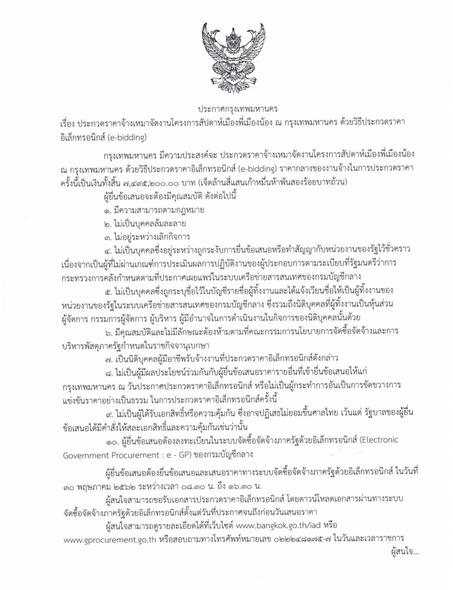 ประกวดราคาจ้างเหมาจัดงานโครงการสัปดาห์เมืองพี่เมืองน้อง ณ กรุงเทพมหานคร ด้วยวิธีประกวดราคาอิเล็กทรอนิกส์ (e-bidding)