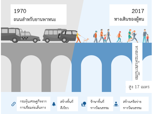 • เปลี่ยนโฉมทางยกระดับให้เป็นศูนย์กลางประวัติศาสตร์ วัฒนธรรม การท่องเที่ยว และนิเวศวิทยาเมือง