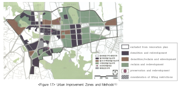 For example, in Gwancheol-dong, designated as a preservation zone, large-scale development was limited by imposing maximum plot area for co-development to protect its spatial identity, while commercial usage for street revitalization in the lower stories of buildings was encouraged to create a pedestrian-oriented environment. (See figure 12)