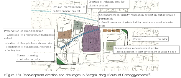 แนวทางและการพัฒนาใหม่และความท้าทายในย่านซัมกัคดง (ทางใต้ของคลองชองกเยชอน)