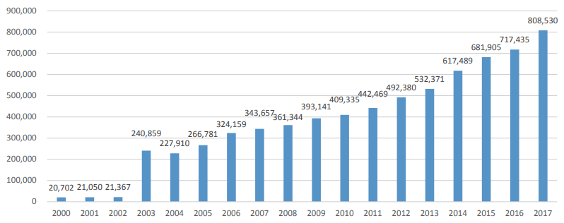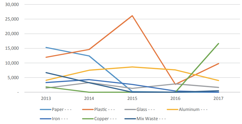Figure 6: Amount of Recyclable Waste Exported under the Due Process of MoE (Tonnes/year) Source: MoE, 2018