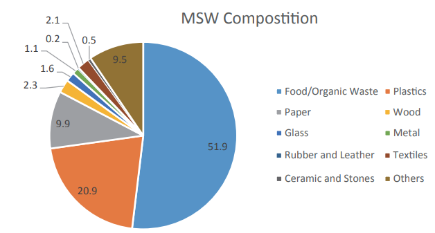 มูลฝอยในกรุงพนมเปญประกอบด้วยมูลฝอยอินทรีย์ (organic waste) มากกว่าร้อยละ 50 พลาสติก
