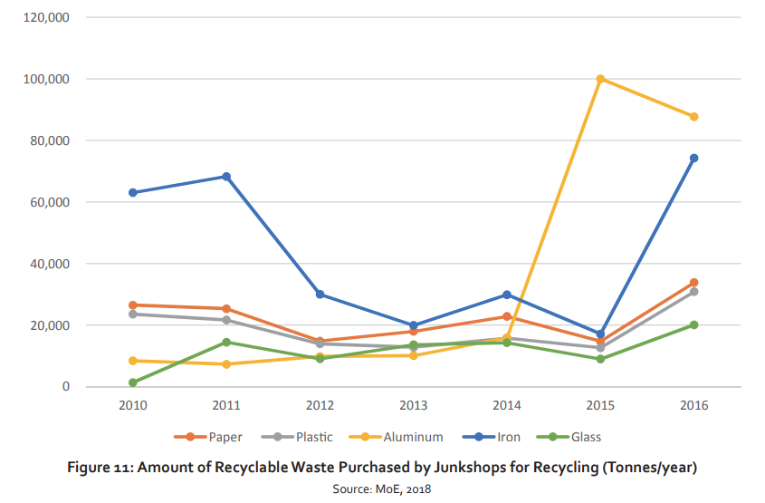 Figure 5: Amount of Recyclable Waste Purchased by Junkshops for Recycling (Tonnes/year)