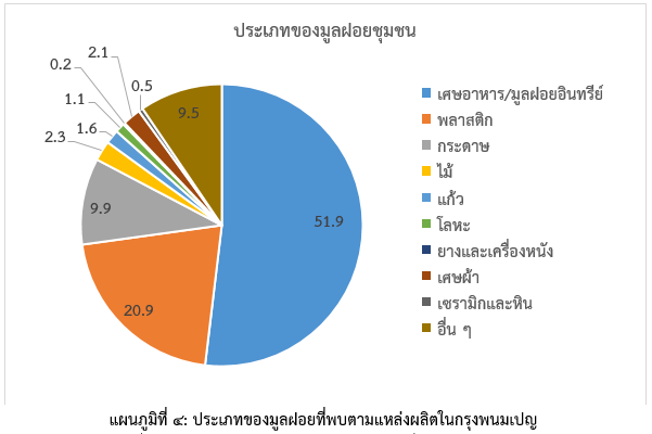 แผนภูมิที่ 4 แสดงถึงประเภทของตัวอย่างมูลฝอยชุมชนที่ได้จากการผลิตในกรุงพนมเปญ โดยทั่วไปแล้ว