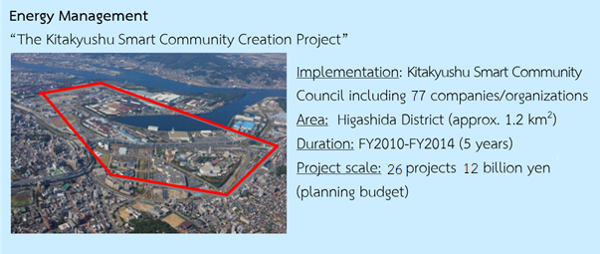 เมืองคิตะคิวชูตั้งอยู่ในจังหวัดฟูกูโอกะซึ่งอยู่ทางฝั่งตะวันตกของหมู่เกาะคิวชู เมื่อ พ.ศ. 2444 ได้รับการพัฒนาให้เป็นเมืองแห่งอุตสาหกรรมการผลิตส่งผลให้เกิดมลพิษทางอากาศและทางน้ำในช่วงทศวรรษที่ 60 ในเวลาต่อมา ผู้ที่เกี่ยวข้องโดยเฉพาะอย่างยิ่งประชาชนได้ร่วมกันทำงานอย่างหนักเพื่อปรับปรุงสภาพสิ่งแวดล้อมให้ท้องฟ้าและมหาสมุทรในคิตะคิวชูกลับมามีสีครามสดใสได้อีกครั้ง ประสบการณ์เหล่านี้ทำให้เมืองคิตะคิวชูได้มีโอกาสพัฒนาอุตสาหกรรมใหม่ ๆ รวมถึงเทคโนโลยีด้านสิ่งแวดล้อมอย่างต่อเนื่องจนกลายเป็นเมืองอัจฉริยะ