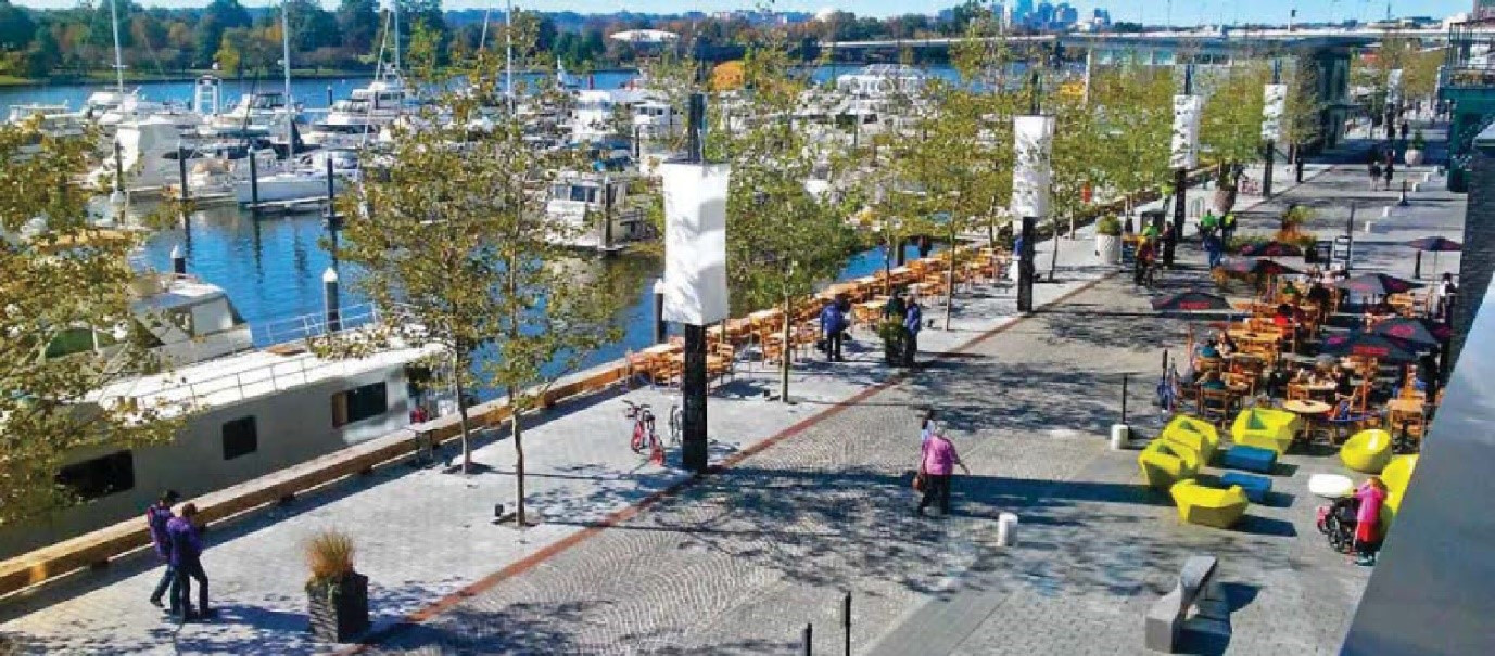 The District has expanded public transportation options to waterfront communities with the addition of DC Circulator routes, streetcar, and bikeshare, as well as on streets rebuilt for better walking and biking. Development along the waterfront, especially on underutilized public land, large sites, and former industrial properties, has taken advantage of the proximity to Metro’s Green, Blue, Orange and Silver lines, creating nodes of activity at the stations. New developments like The Wharf also have recognized the opportunity to supplement public transit with privately-funded options like shuttle service to and from Metro stations and new water taxi service.