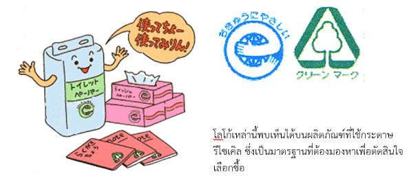- พยายามใช้ผลิตภัณฑ์ที่ได้จากการรีไซเคิล เช่น กระดาษชำระ เป็นต้น