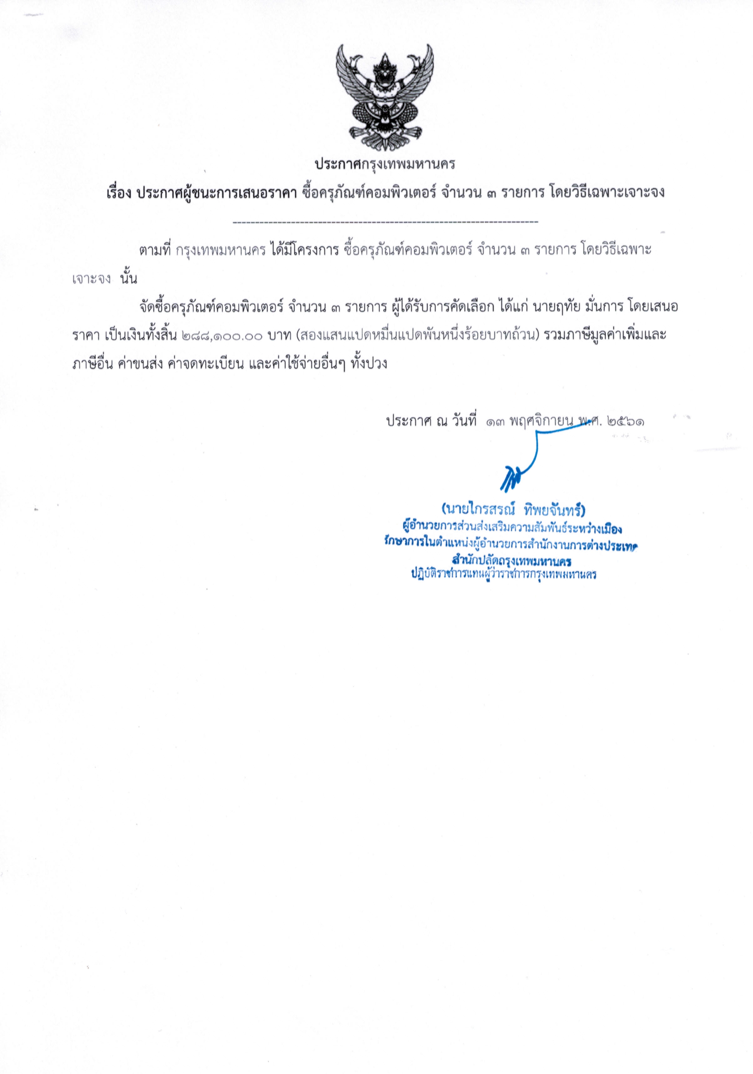การเสนอราคาการจัดซื้อครุภัณฑ์คอมพิวเตอร์ จำนวน 3 รายการ