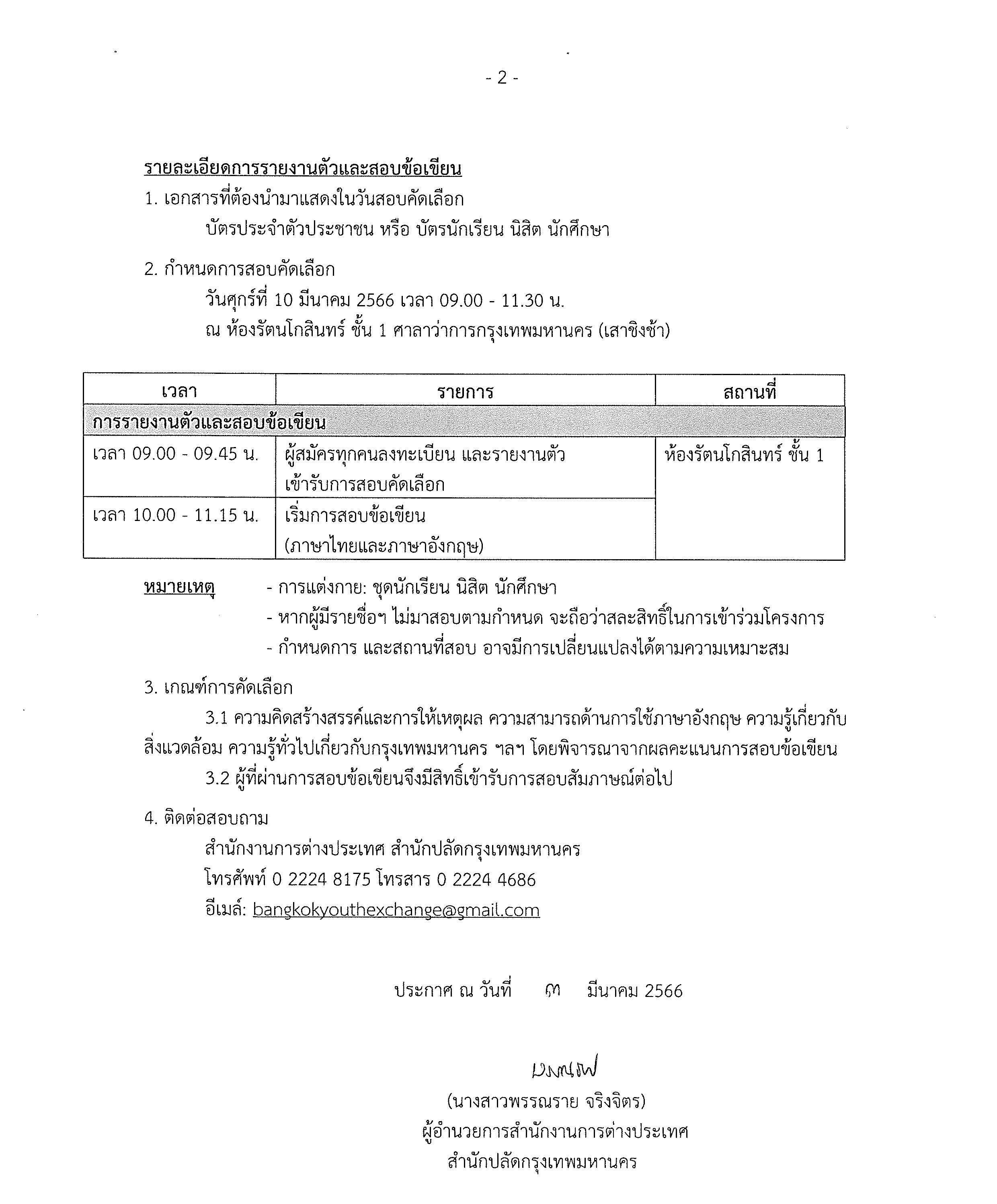 ประกาศสำนักงานการต่างประเทศ เรื่อง รายชื่อผู้มีสิทธิ์เข้ารับการคัดเลือกเพื่อเข้าร่วม โครงการแลกเปลี่ยนเยาวชนประจำปี พ.ศ. 2566 (เพิ่มเติม)