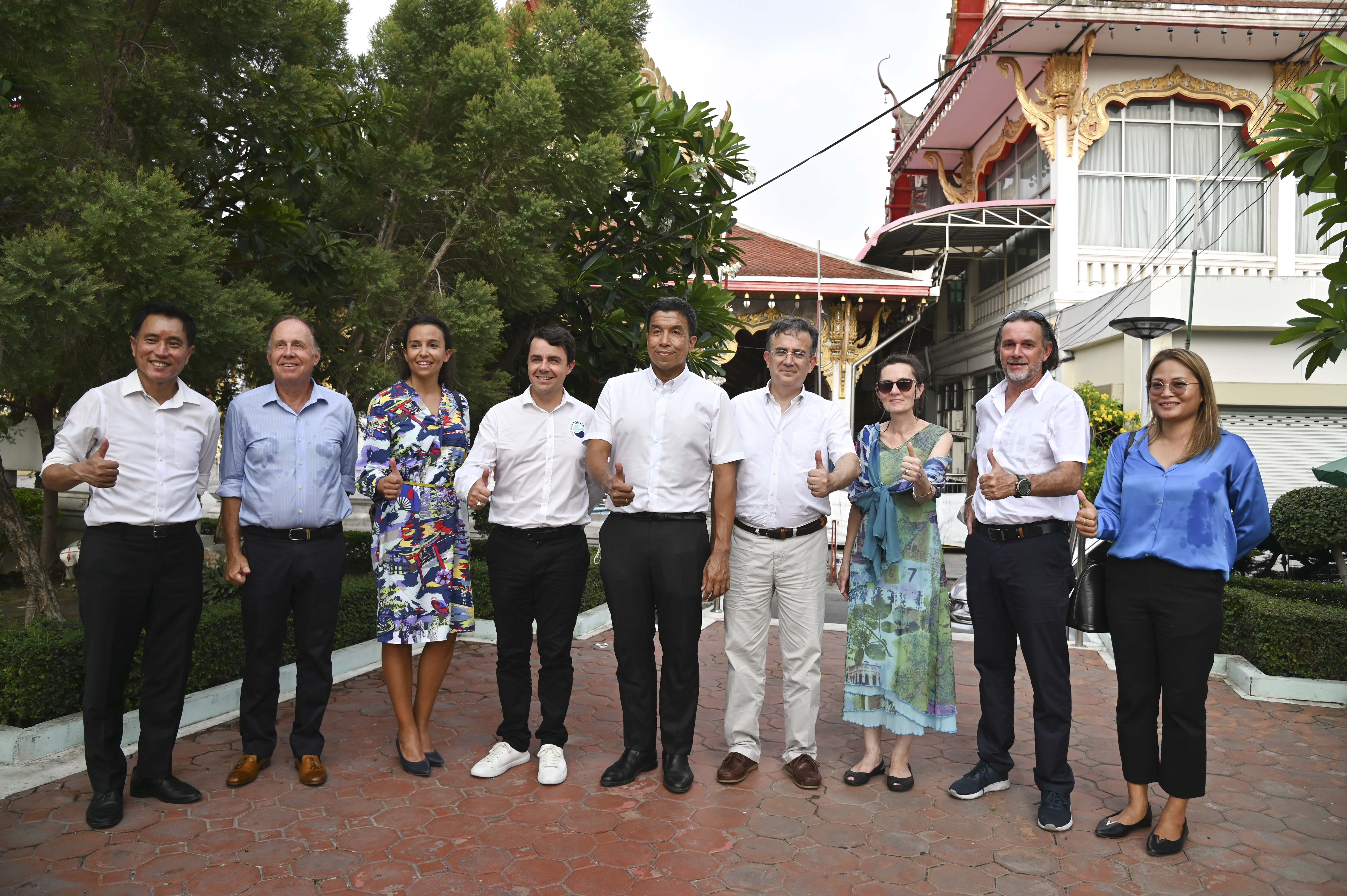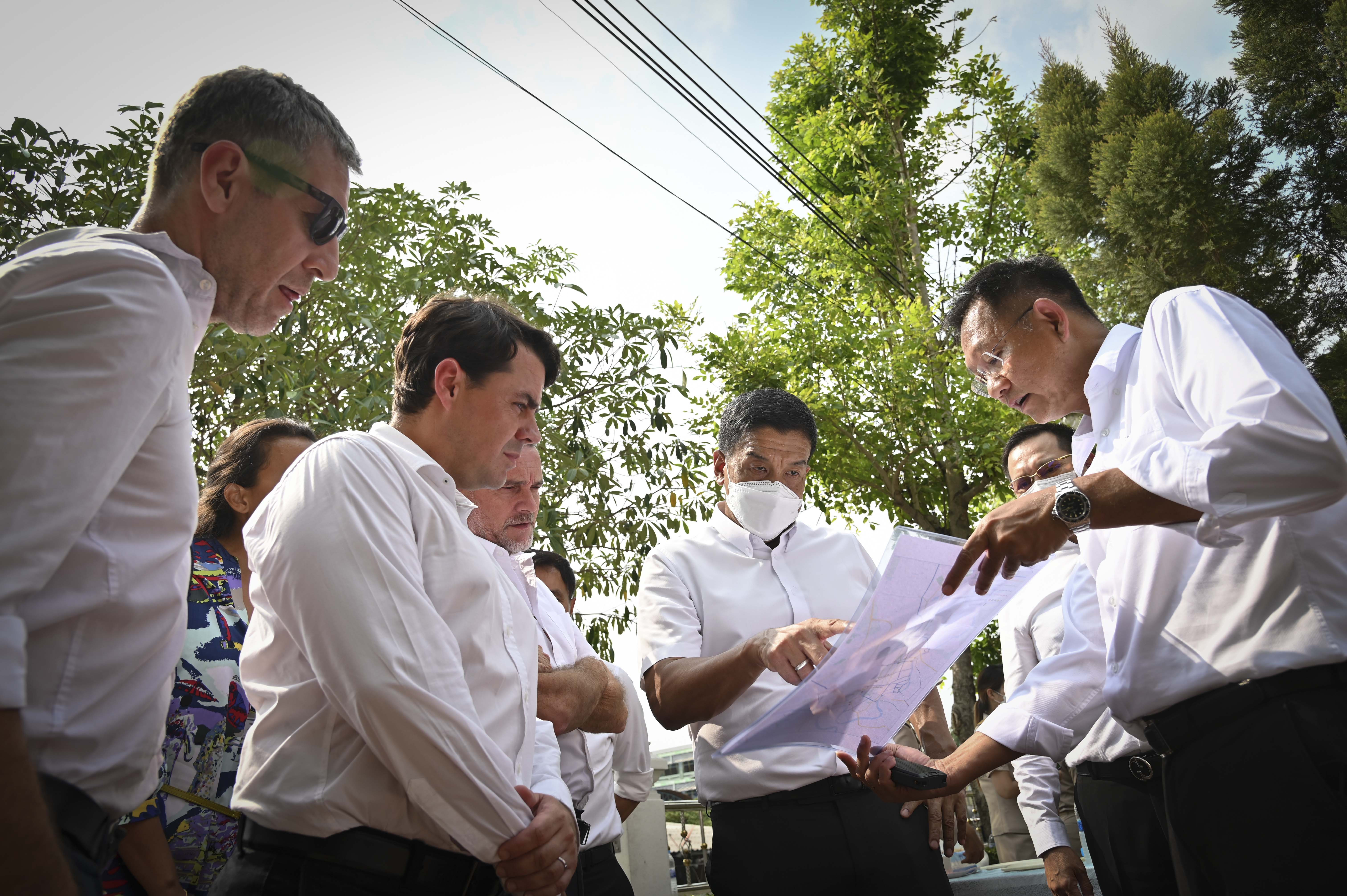 (24 เม.ย.66) นายชัชชาติ สิทธิพันธุ์ ผู้ว่าราชการกรุงเทพมหานคร พร้อมด้วยนายตีแยรี มาตู เอกอัครราชทูตฝรั่งเศสประจำประเทศไทยพร้อมคณะ และนายเดวิด มาร์ติน ประธานมูลนิธิ Ocean for All พร้อมคณะ ลงพื้นที่ตรวจเยี่ยมชมการพัฒนาคลองลาดพร้าว