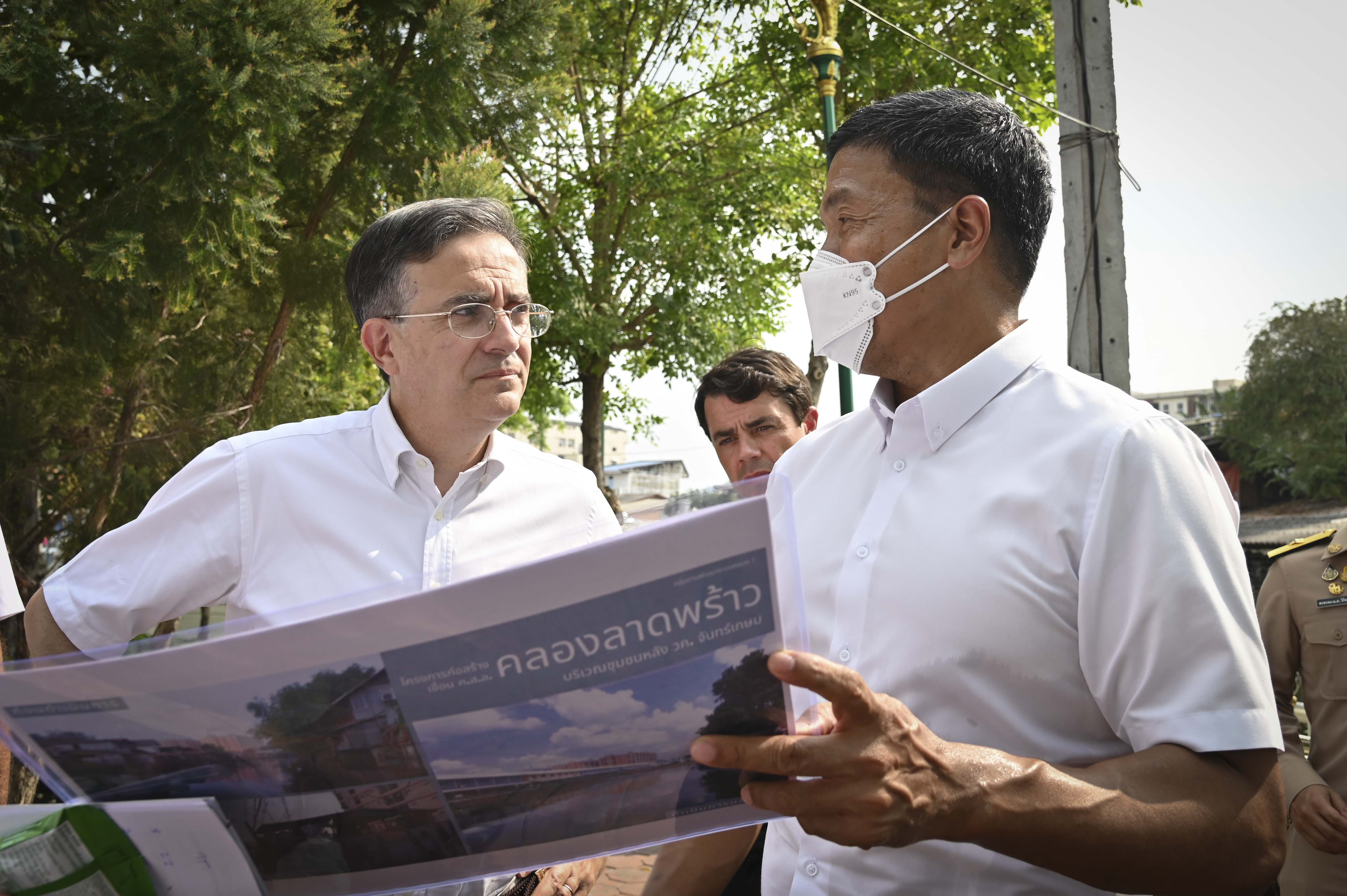 (24 เม.ย.66) นายชัชชาติ สิทธิพันธุ์ ผู้ว่าราชการกรุงเทพมหานคร พร้อมด้วยนายตีแยรี มาตู เอกอัครราชทูตฝรั่งเศสประจำประเทศไทยพร้อมคณะ และนายเดวิด มาร์ติน ประธานมูลนิธิ Ocean for All พร้อมคณะ ลงพื้นที่ตรวจเยี่ยมชมการพัฒนาคลองลาดพร้าว โดยลงเรือสำรวจสภาพแวดล้อมภายในคลอง โครงการพัฒนาด้านที่อยู่อาศัยริมคลอง ความเป็นอยู่ของประชาชนที่พักอาศัยริมคลอง ณ บริเวณริมคลองลาดพร้าวทั้งสองฝั่ง พร้อมทั้งหาแนวทางการพัฒนาพื้นที่ริมคลอง ปรับภูมิทัศน์ตลอดจนระบบความปลอดภัยทางน้ำ ให้มีประสิทธิภาพอย่างยั่งยืน