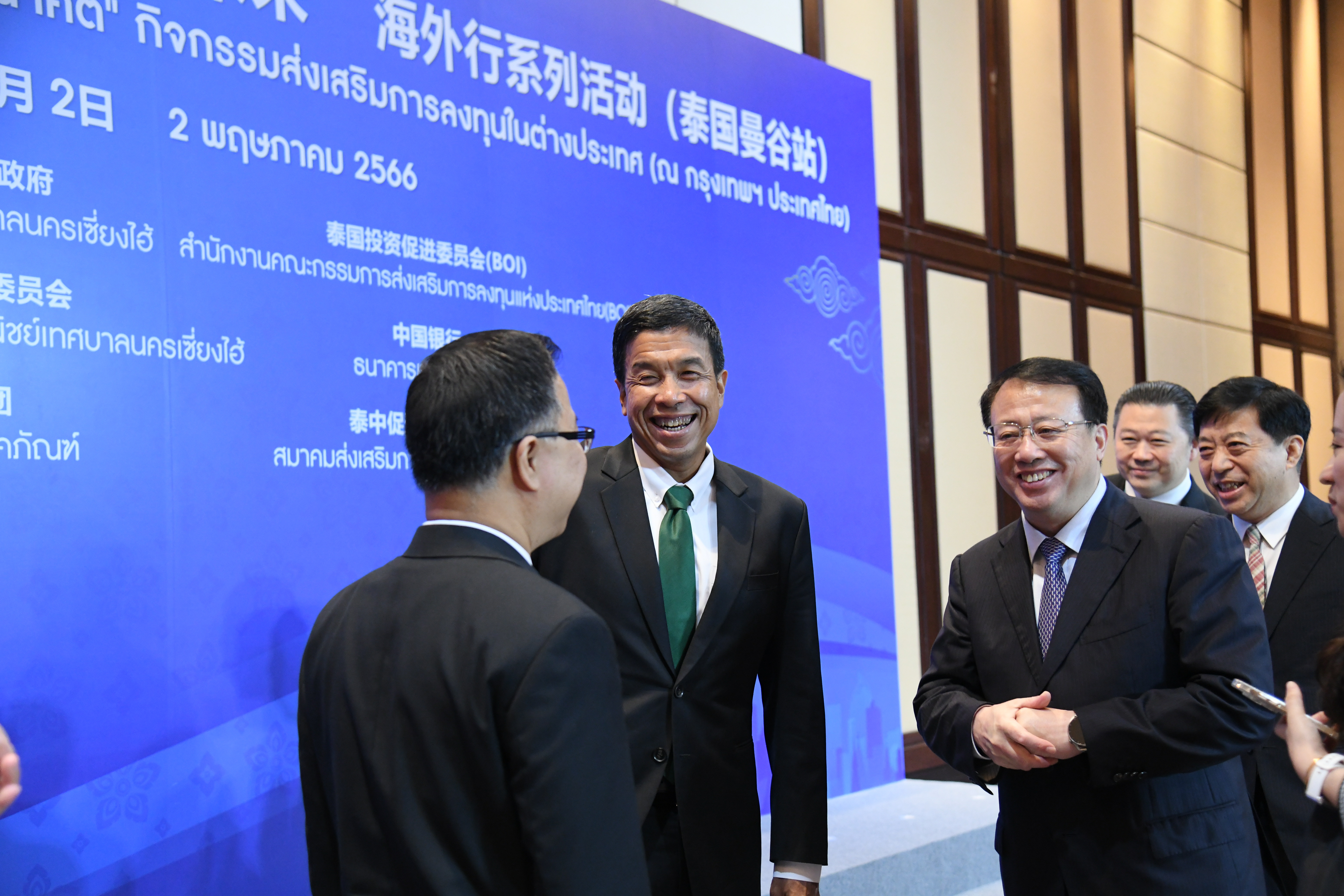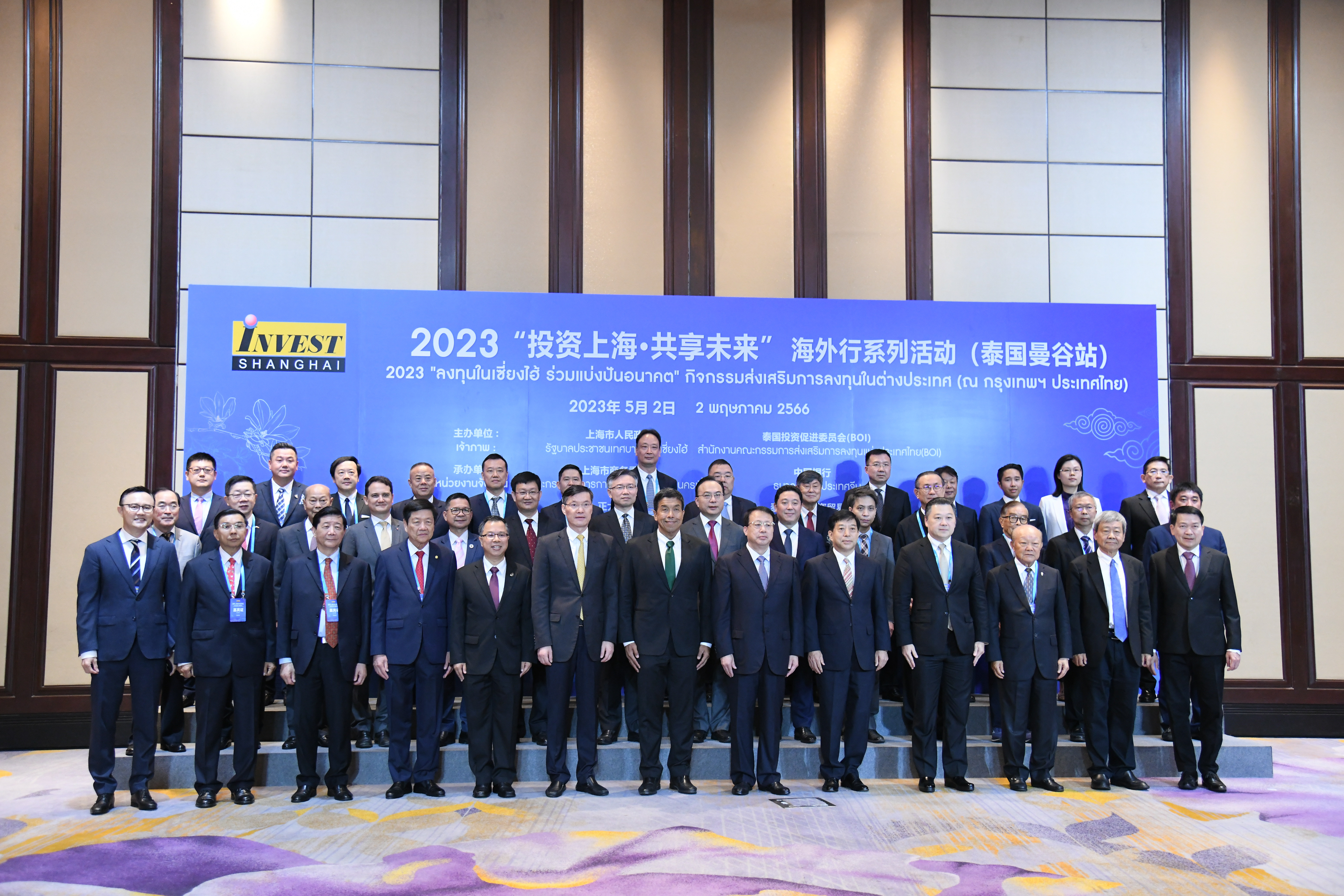 ในโอกาสเพื่อส่งเสริมการแลกเปลี่ยนและความร่วมมือทางเศรษกิจและการค้าระหว่างเซี่ยงไฮ้และประเทศไทย รัฐบาลเทศบาลนครเซี่ยงไฮ้และคณะกรรมการส่งเสริมการลงทุนแห่งประเทศไทย ร่วมกันจัดกิจกรรม “ลงทุนในเซี่ยงไฮ้ ร่วมแบ่งปันอนาคต” ในต่างประเทศ (ณ กรุงเทพมหานคร ประเทศไทย) เพื่อคว้าโอกาสจากความตกลงหุ้นส่วนทางเศรษฐกิจระดับภูมิภาค (RCEP) กระชับความเชื่อมโยงทางเศรษฐกิจระดับภูมิภาค สร้างความร่วมมือด้านการค้าและการลงทุน และเร่งยกระดับความร่วมมือระหว่างสองภูมิภาค ภายในงานประกอบด้วยกิจกรรมการกล่าวสุนทรพจน์การส่งเสริมการลงทุนในเซี่ยงไฮ้ แนะนำข้อเสนอพิเศษโดยเขตใหม่หลินกัง เขตการค้าเสรีนำร่องเซี่ยงไฮ้ แนะนำข้อเสนอพิเศษโดยคณะกรรมการส่งเสริมการลงทุนแห่งประเทศไทย การแบ่งปันข้อมูลเชิงลึก และพิธีลงนาม โดยมี นายกง เจิ้ง นายกเทศมนตรีนครเซี่ยงไฮ้ สาธารณรัฐประชาชนจีน นายหาน จื้อเฉียง เอกอัครราชทูตสาธารณรัฐประชาชนจีนประจำประเทศไทย นายต่อศักดิ์ โชติมงคล ประธานที่ปรึกษาของผู้ว่าราชการกรุงเทพมหานคร และผู้เกี่ยวข้อง ร่วมงาน