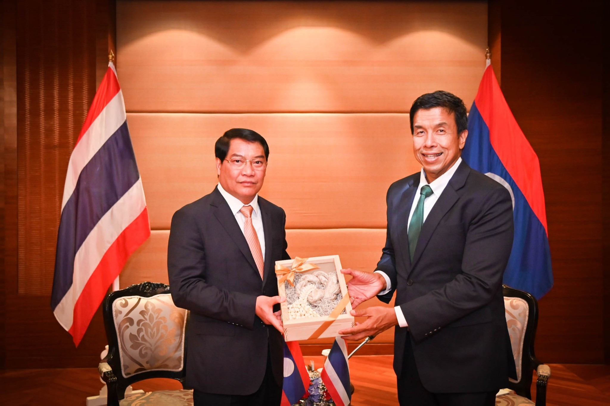 โอกาสนี้ผู้ว่าราชการกรุงเทพมหานครได้มอบของที่ระลึก ชุดชากาช้าง สำหรับเจ้าครองนครหลวงเวียงจันทน์ และชุดแก้วลายไทย สำหรับผู้แทนนครหลวงเวียงจันทน์