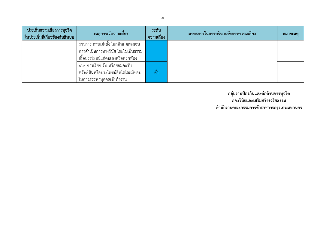o23 การประเมินความเสี่ยงที่อาจเกิดการให้/รับ สินบนจากการดำเนินงานตามภารกิจของหน่วยงานประจำปี พ.ศ. 2568