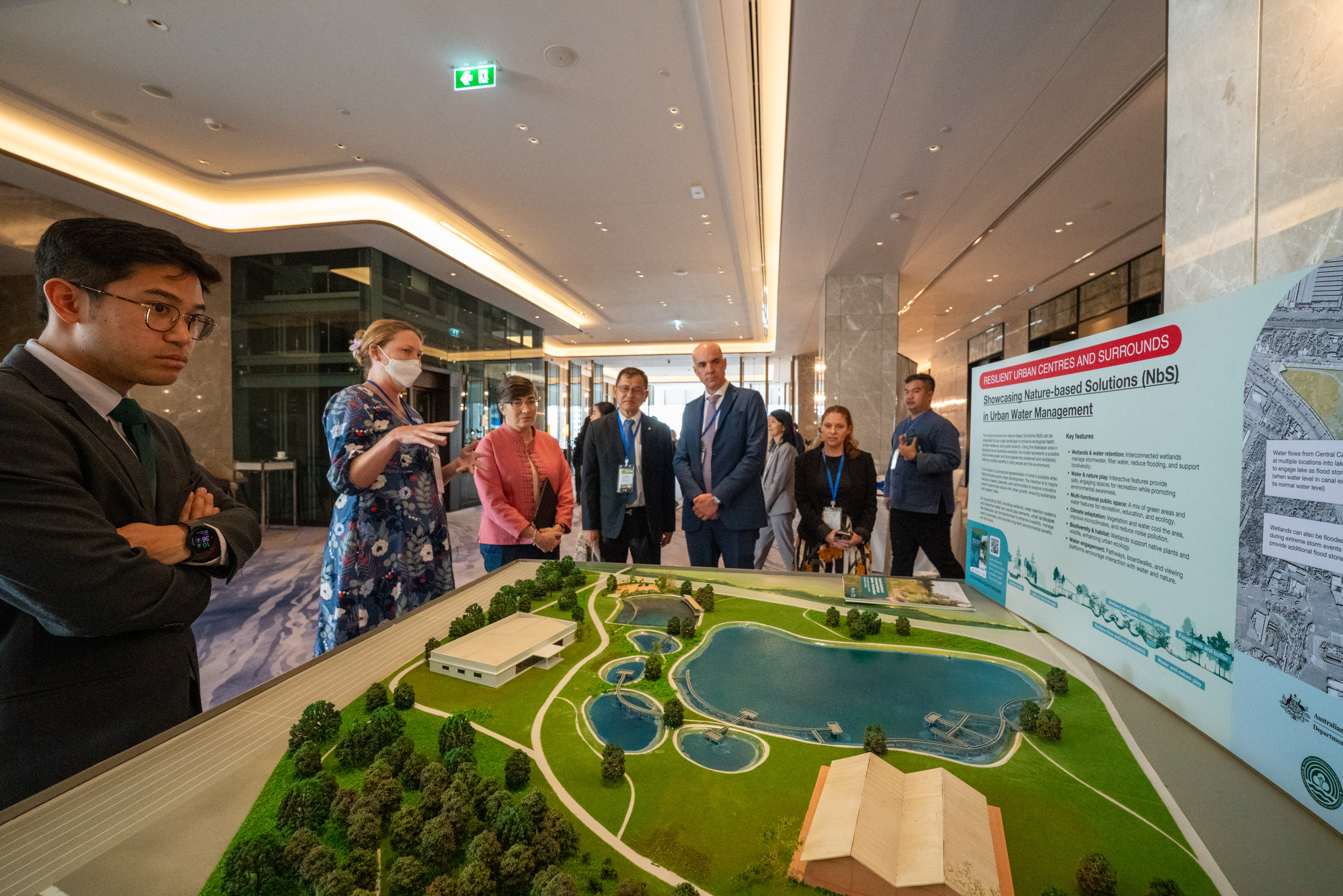 ซึ่งภายหลังการประชุม คณะผู้แทนได้ลงพื้นที่ เยี่ยมชมสวนเบญจกิติ เขตคลองเตย ซึ่งเป็นตัวอย่างของการนำแนวคิด NbS มาใช้ในการออกแบบและพัฒนาสิ่งแวดล้อมเมืองให้สามารถปรับตัวต่อการเปลี่ยนแปลงสภาพภูมิอากาศได้อย่างยั่งยืน