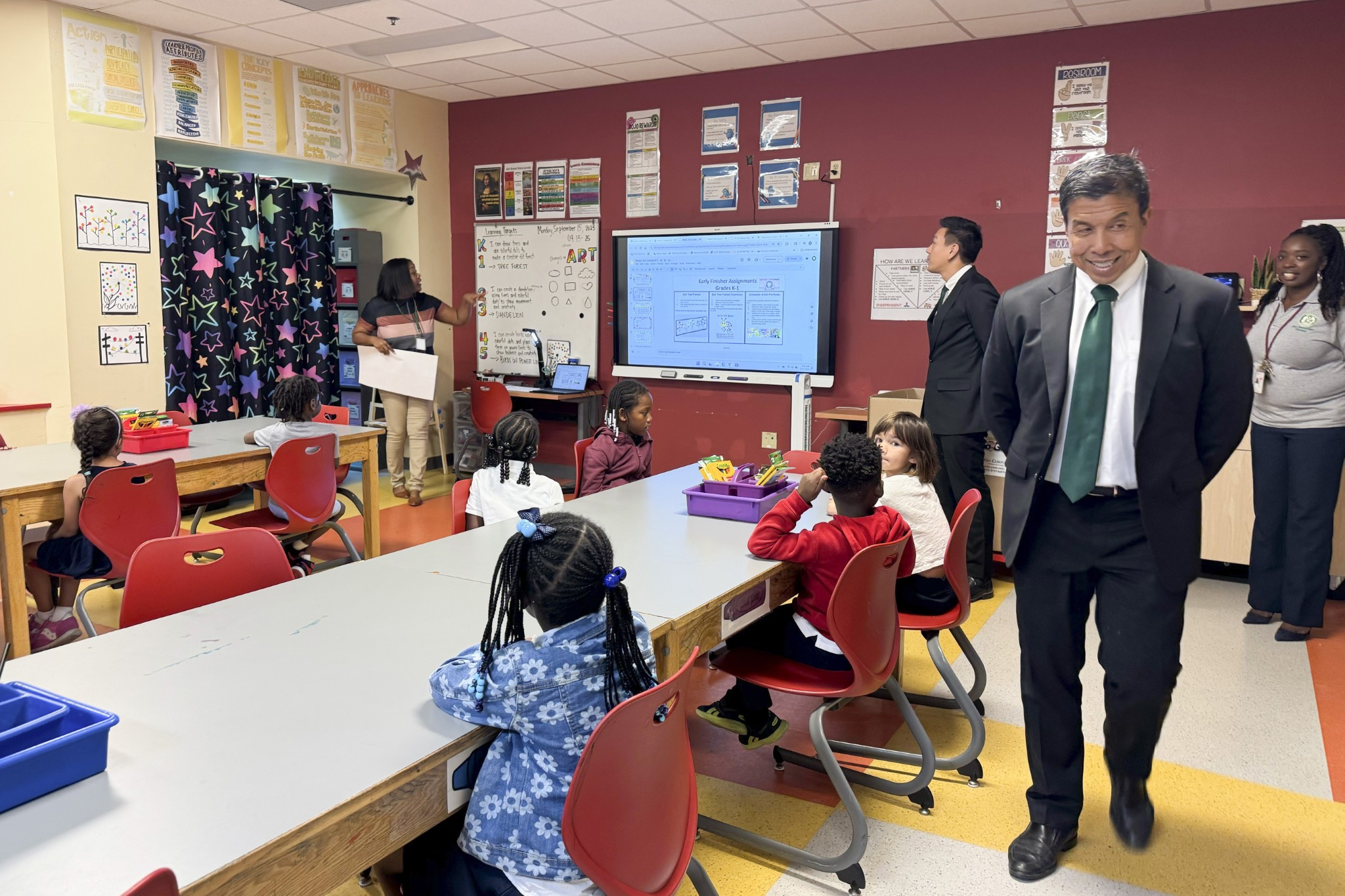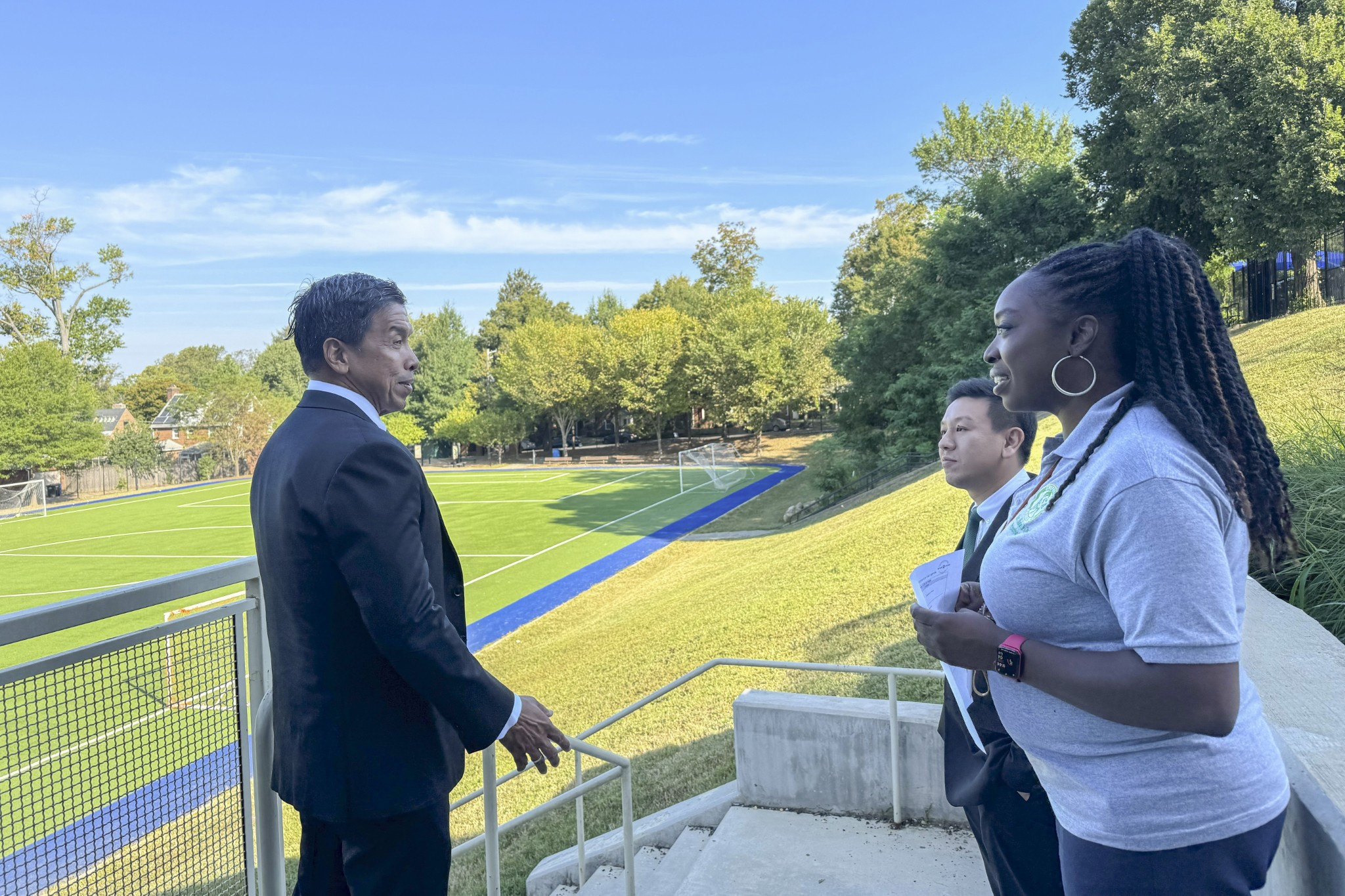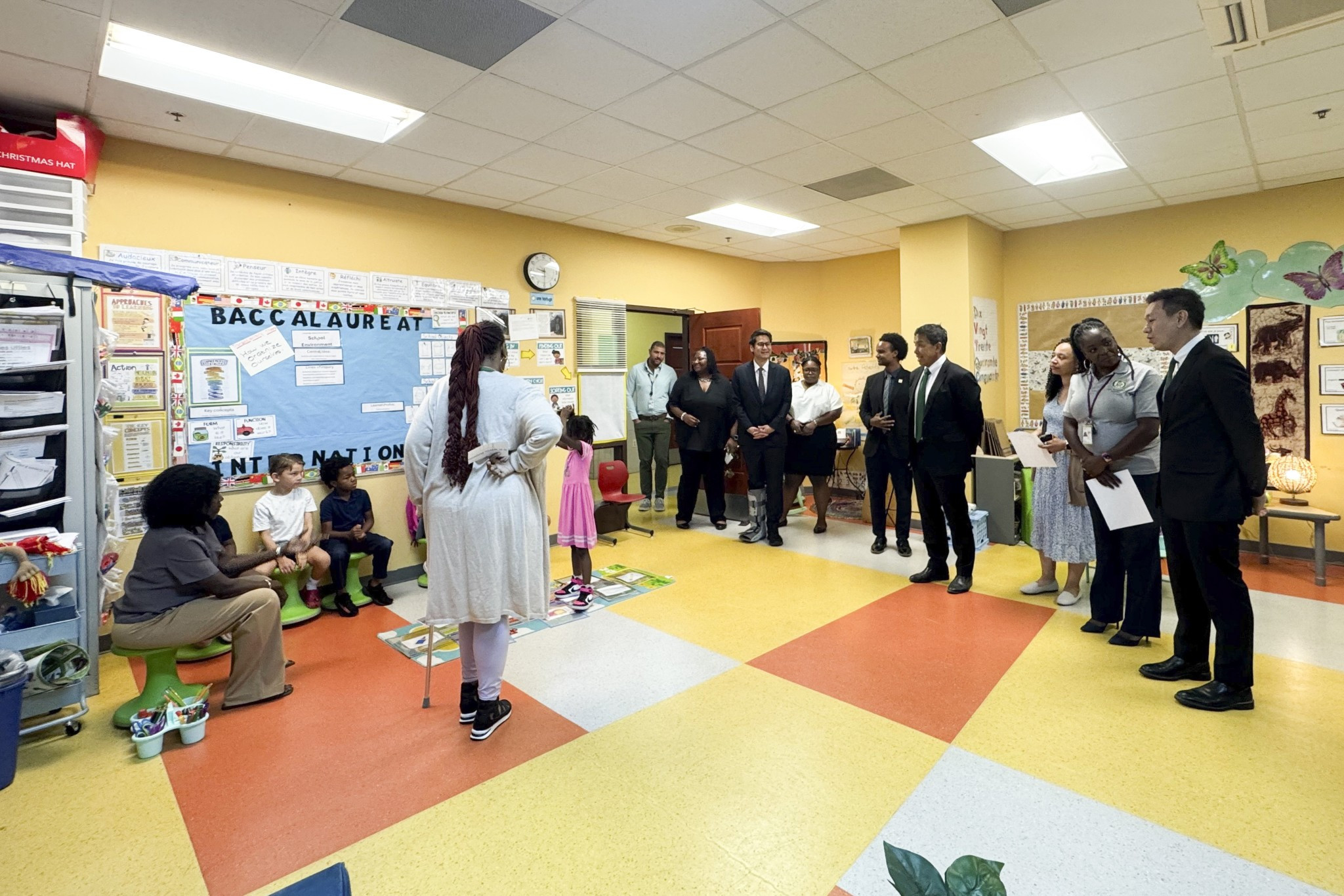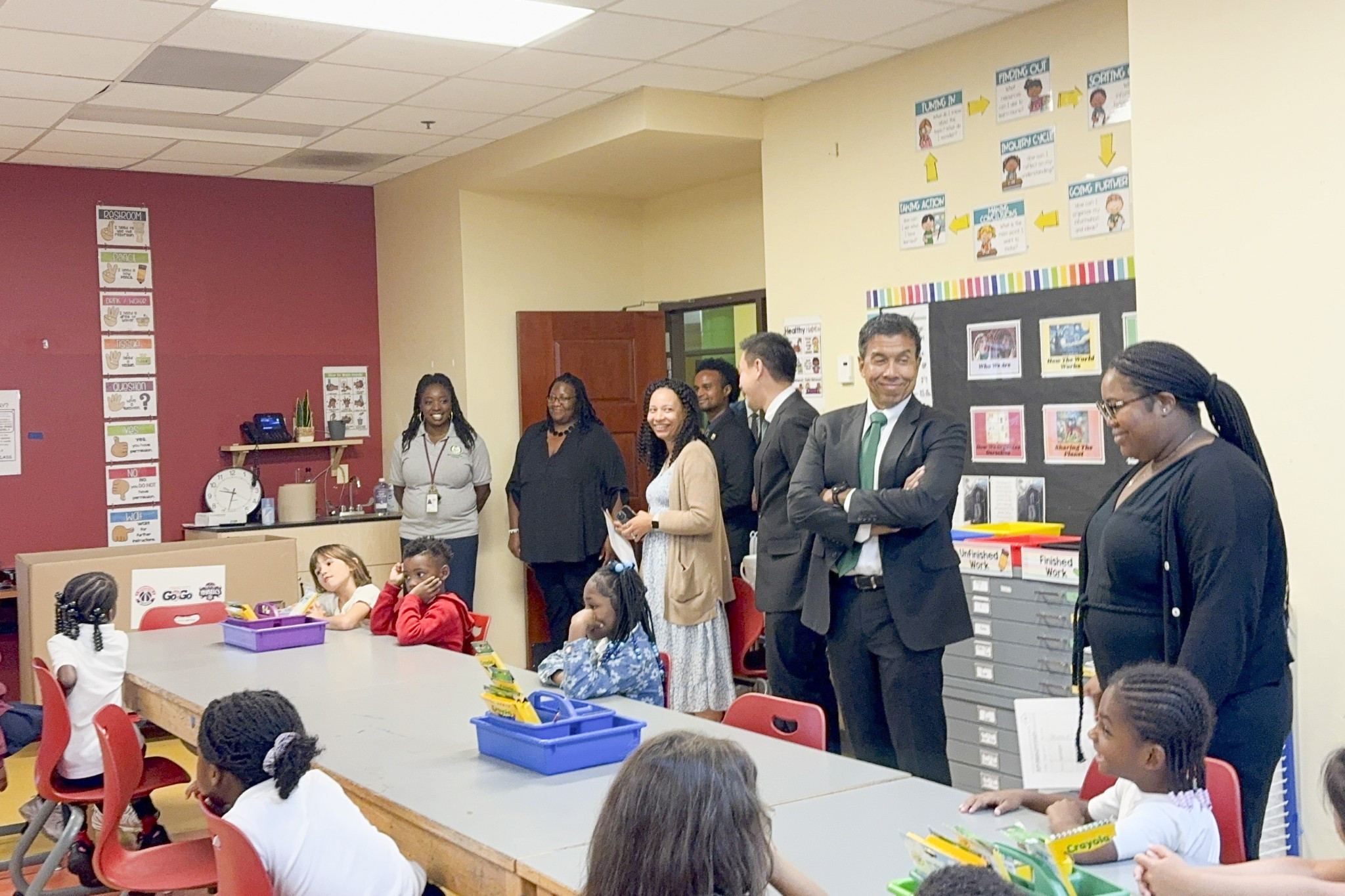 ในวันเดียวกันนี้ ผู้ว่าฯ ชัชชาติ และคณะฯ ได้เข้าเยี่ยมชมโรงเรียนประถมเช็พเพิร์ด (Shepherd Elementary School) ซึ่งเป็นโรงเรียนหลักสูตร International Baccalaureate (IB) ระดับชั้นประถมศึกษา เพียง 1 ใน 3 แห่งของกรุงวอชิงตัน ดี.ซี. ที่มุ่งเน้นการพัฒนาผู้เรียนให้มีความเป็นพลเมืองโลกที่ใฝ่รู้และลงมือปฏิบัติจริง ซึ่งโรงเรียนแห่งนี้ยังเป็นส่วนหนึ่งของโครงการสถานเอกอัครราชทูตอุปถัมภ์ชั้นเรียน (Embassy Adoption Program) เปิดโอกาสให้นักเรียนได้ร่วมมือกับสถานทูตต่าง ๆ รวมถึงสถานเอกอัครราชทูตไทย ณ กรุงวอชิงตัน เพื่อเพิ่มพูนความรู้ ความเข้าใจด้านศิลปะ วัฒนธรรม ประเพณี และภูมิศาสตร์ของนานาประเทศ นอกจากนี้ โรงเรียนยังมีจุดเด่นด้านกิจกรรมนอกห้องเรียนและนอกเวลาเรียน รวมถึงการสนับสนุนจากเครือข่ายสมาคมผู้ปกครองและชุมชนโดยรอบ และได้เดินทางเยือนสำนักงานผู้กำกับดูแลการศึกษาแห่งรัฐ (Office of the State Superintendent of Education: OSSE) เพื่อเข้าพบผู้แทนสำนักงานฯ พร้อมด้วยผู้แทนเขตการศึกษา กรุงวอชิงตัน ดี.ซี. (District of Columbia Public Schools: DCPS) โดยได้หารือและแลกเปลี่ยนประสบการณ์ ในประเด็นด้านการศึกษา เช่น การส่งเสริมสภาพแวดล้อมที่หลากหลายและครอบคลุมในโรงเรียน การบูรณาการนักเรียนที่มีความท้าทายต่าง ๆ ความสำคัญของการจัดการศึกษาปฐมวัย มาตรฐานและการประเมินในระบบการศึกษา การสนับสนุนครูและบุคลากรทางการศึกษา การใช้เทคโนโลยีเพื่อเพิ่มผลสัมฤทธิ์ทางการเรียน และการพัฒนาผู้เรียนอย่างรอบด้าน