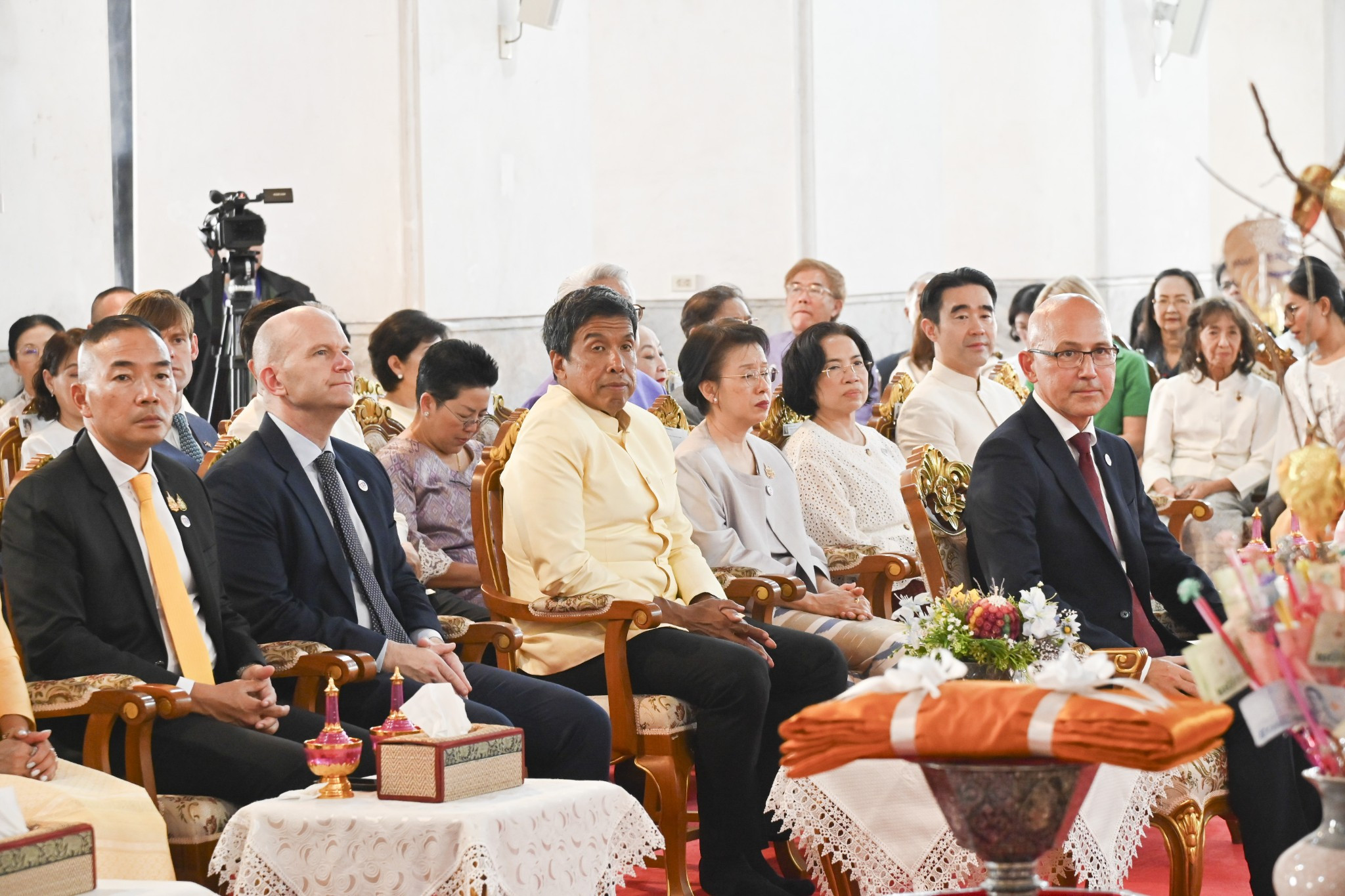 ในการนี้ พระพรหมวชิราธิบดี เจ้าอาวาสวัดมหาธาตุยุวราชรังสฤษฎิ์ ให้เกียรติเป็นประธานฝ่ายสงฆ์ และนายมาร์ค กูดดิง เอกอัครราชทูตอังกฤษประจำประเทศไทย เป็นประธานฝ่ายฆราวาส โดยมีพระราชวิเทศปัญญาคุณ เจ้าอาวาสพุทธปทีป ประธานพระธรรมทูตไทยในสหราชอาณาจักรและไอร์แลนด์เป็นผู้กล่าวรายงานโดยกล่าวถึงที่มาและวัตถุประสงค์ของการจัดงานในครั้งนี้ พร้อมด้วยแขกผู้มีเกียรติ ประกอบด้วย นางเอกสิริ ปิณฑะรุจิ ปลัดกระทรวงการต่างประเทศ พลอากาศเอก เสกสรร คันธา ผู้บัญชาการทหารอากาศ นายพิษณุ สุวรรณะชฎ อดีตเอกอัครราชทูตไทยประจำสหราชอาณาจักร นายกิตติ วะสีนนท์ อดีตเอกอัครราชทูตไทยประจำสหราชอาณาจักร นายอัศวิน เตชะเจริญวิกุล ประธานเจ้าหน้าที่บริหารและกรรมการผู้จัดการใหญ่ กลุ่มบีเจซี บิ๊กซี นางฐาปณี เตชะเจริญวิกุล กรรมการรองผู้จัดการใหญ่อาวุโส กลุ่มบีเจซี บิ๊กซี กมลนัย ชัยเฉนียน รองกรรมการผู้จัดการใหญ่ บริษัท ทีซีซี แอสเซ็ทส์ (ประเทศไทย) จำกัด
