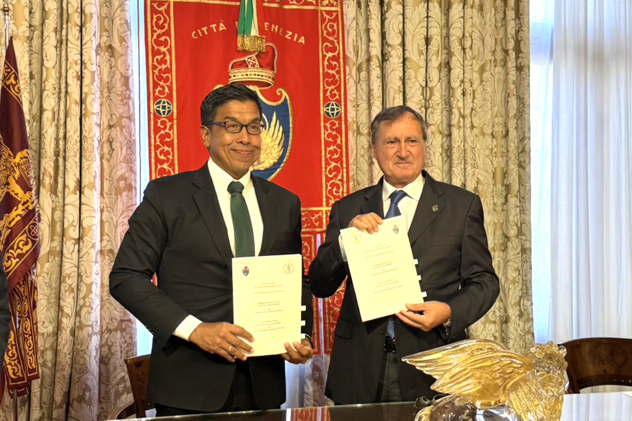 หลังจากนั้น ผู้ว่าราชการกรุงเทพมหานครและนายกเทศมนตรีเมืองเวนิสได้ร่วมลงนามในหนังสือแสดงเจตจำนงระหว่างเมืองเวนิส และกรุงเทพมหานคร โดยได้รับเกียรติจากนายพุทธพร อิ้วตกส้าน เอกอัครราชทูตประจำสาธารณรัฐอิตาลี และนายอันเดรอา มาร์กอน กงสุลกิตติมศักดิ์ ณ เมืองเวนิส ร่วมเป็นสักขีพยาน