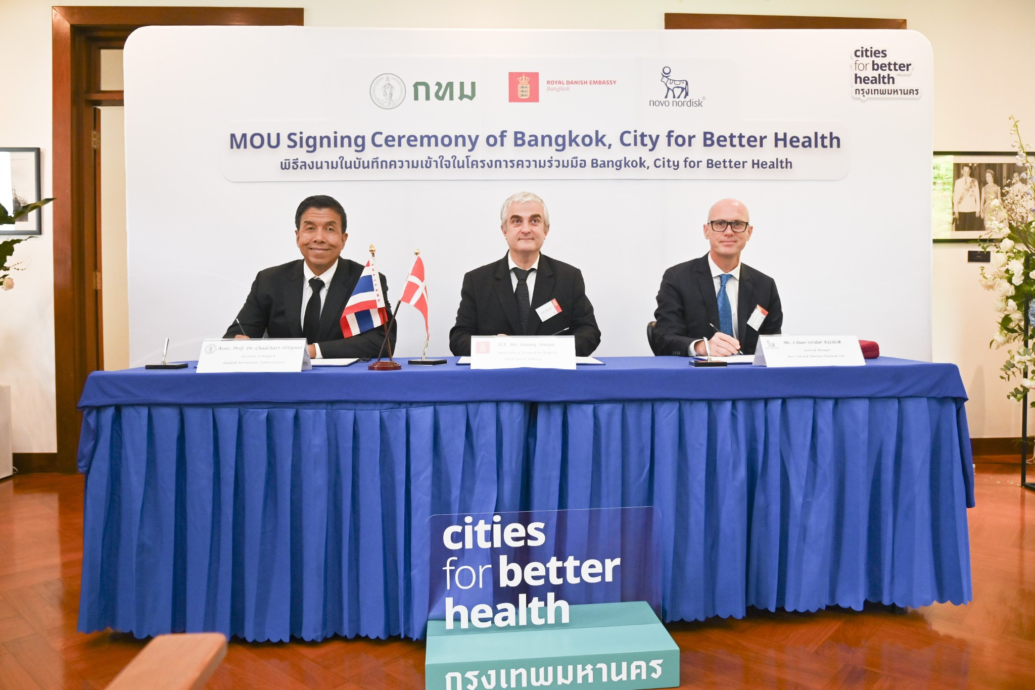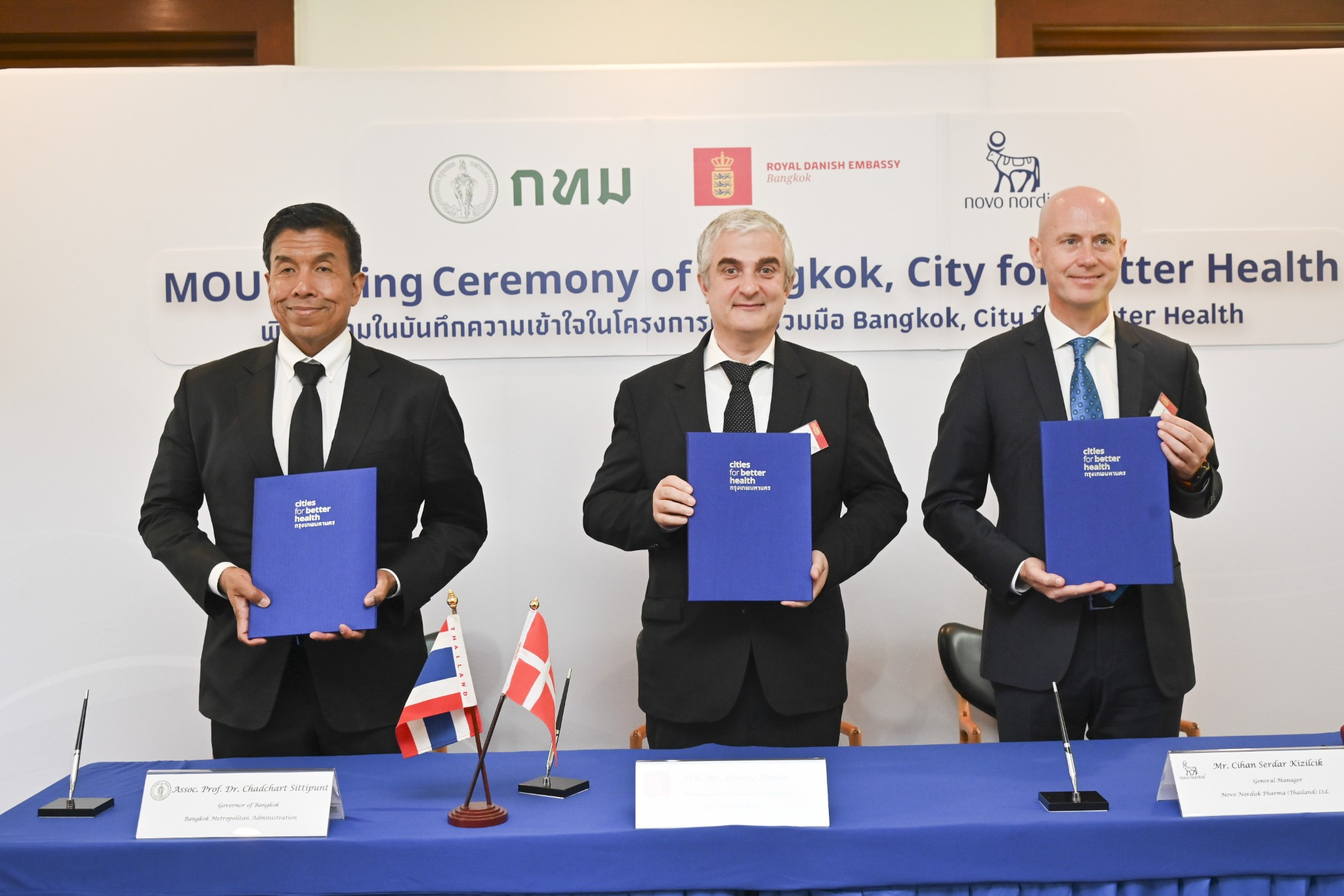 (วันที่ 5 พฤศจิกายน 2568 เวลา 10.00 น.) — นายชัชชาติ สิทธิพันธุ์ ผู้ว่าราชการกรุงเทพมหานคร พร้อมด้วย ฯพณฯ นายแดนนี่ แอนนัน เอกอัครราชทูตเดนมาร์กประจำประเทศไทย และบริษัท โนโว นอร์ดิสค์ ฟาร์มา (ประเทศไทย) จำกัด ได้ร่วมลงนามบันทึกความเข้าใจ (MoU) เพื่อเปิดตัวโครงการ “Bangkok, City for Better Health”