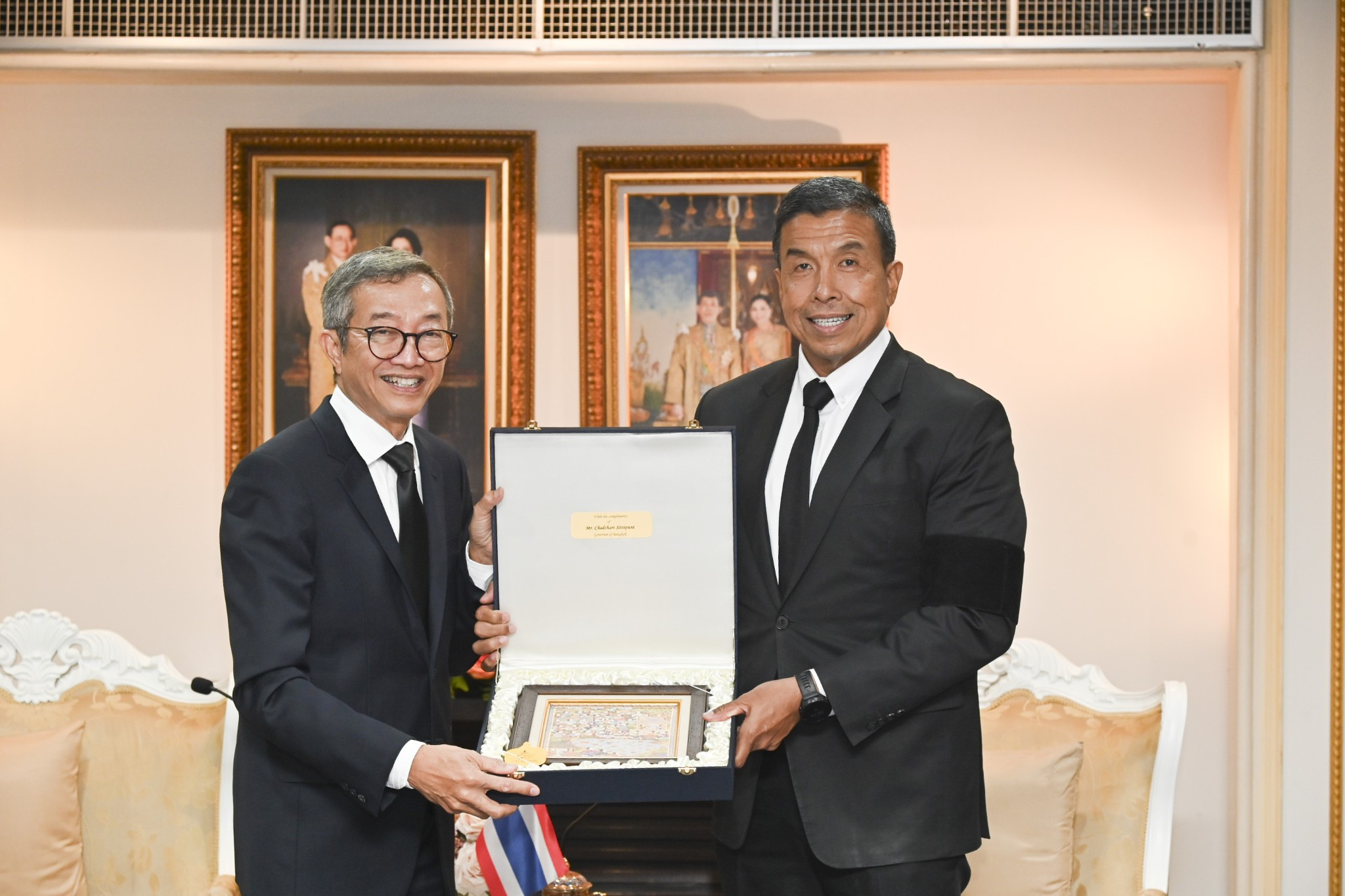 ในการนี้ ผู้ว่าราชการกรุงเทพมหานครได้มอบกรอบรูปเบญจรงค์ลายประเพณีไทยแก่เอกอัครราชทูตฯ และเอกอัครราชทูตฯ ได้มอบเสื้อบาติกลายปารัง (Parang) อันเป็นสัญลักษณ์แห่งความต่อเนื่อง ความเป็นผู้นำ และความเข้มแข็งแก่ผู้ว่าราชการกรุงเทพมหานคร