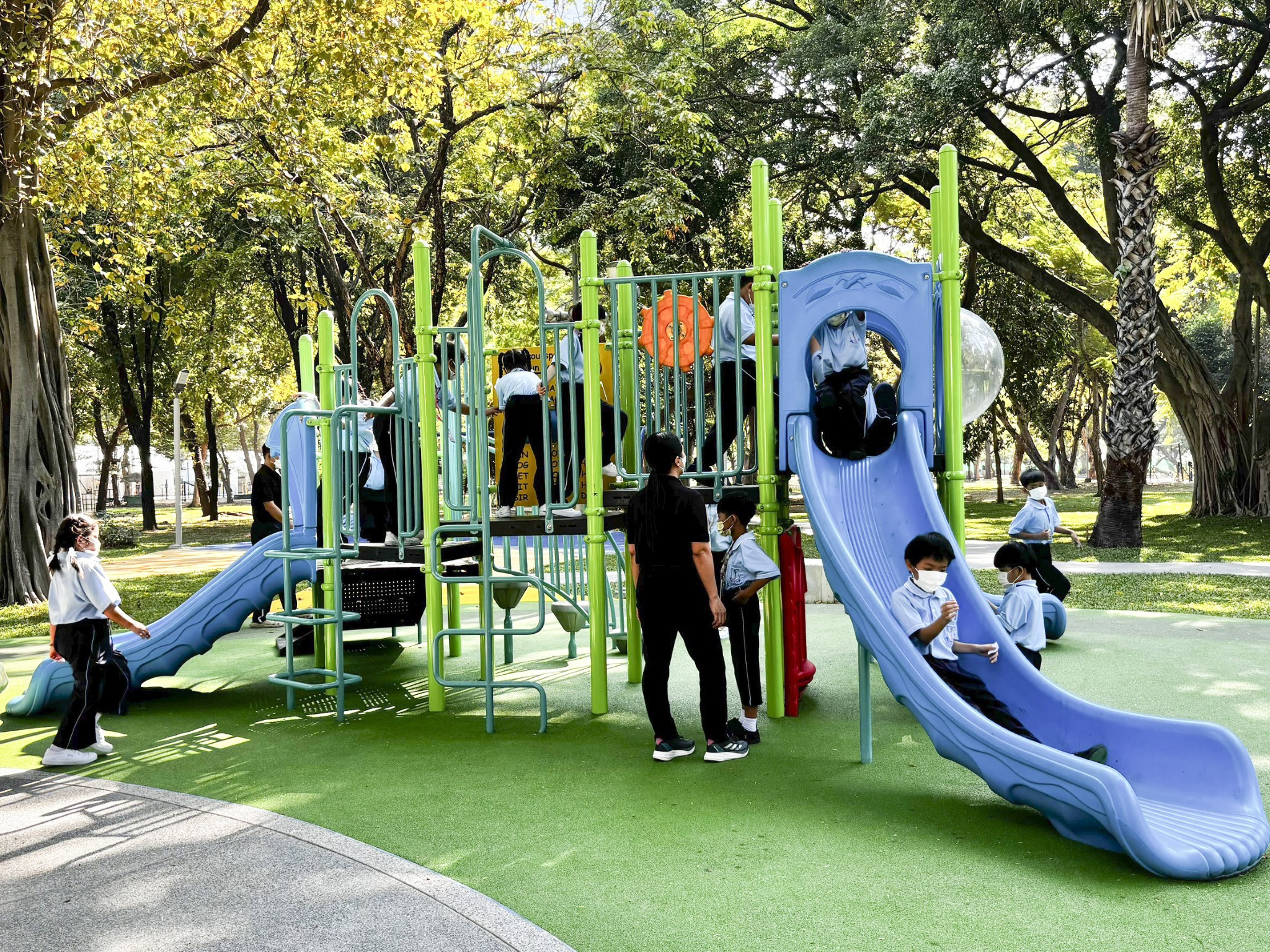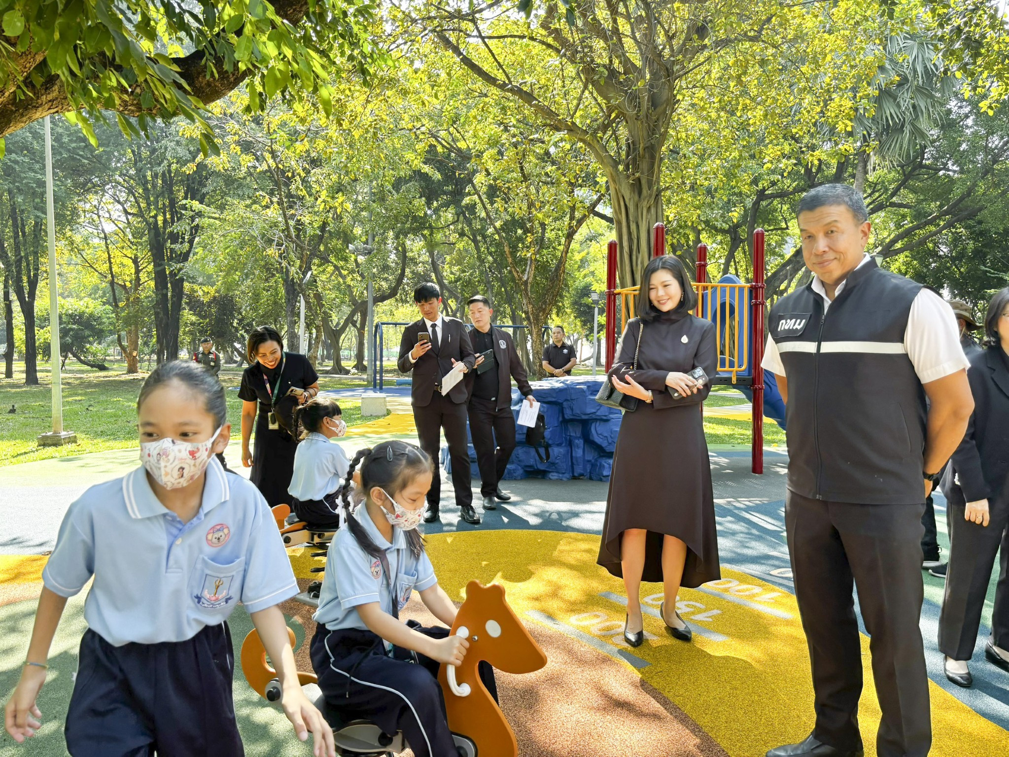 เมื่อวันที่ 3 ธันวาคม 2568 เวลา 10.00 น. ผู้ว่าราชการกรุงเทพมหานครร่วมเปิดสนามเด็กเล่นชุมชนแห่งใหม่ในสวนลุมพินีกับ ดร. แอนเจลา แมคโดนัลด์ เอกอัครราชทูตเครือรัฐออสเตรเลียประจำประเทศไทย พร้อมด้วย ดร. อภิชัย ชัยโรจน์ ผู้ช่วยผู้อำนวยการโรงพยาบาลบีเอ็นเอช และคุณภาวิณี ทรงเงินดี ผู้แทนจาก Leka Studio โดยโครงการนี้เป็นโครงการความร่วมมือระหว่างกรุงเทพมหานครและสถานเอกอัครราชทูตเครือรัฐออสเตรเลีย