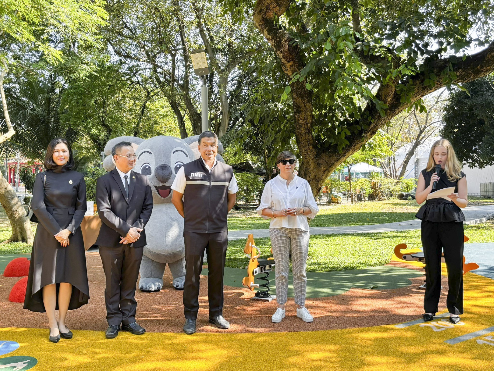 พิธีเปิดในวันนี้ ดร. แอนเจลา แมคโดนัลด์ เอกอัครราชทูตเครือรัฐออสเตรเลียประจำประเทศไทย กล่าวว่า “สนามเด็กเล่นเพื่อชุมชนแห่งนี้แสดงให้เห็นถึงความสัมพันธ์อันแน่นแฟ้นระหว่างออสเตรเลียและไทย และมอบพื้นที่แห่งความสนุกสนานและปลอดภัยสาหรับเด็กที่มีสภาวะความสามารถแตกต่างกันให้มาร่วมเล่นกันได้ เราขอขอบคุณ Leka Studio สำหรับความคิด การออกแบบที่สร้างสรรค์ที่ชูให้เห็นความโดดเด่นของสัตว์ป่าออสเตรเลียเพื่อช่วยสร้างเสริมจินตนาการและการเคลื่อนไหว”