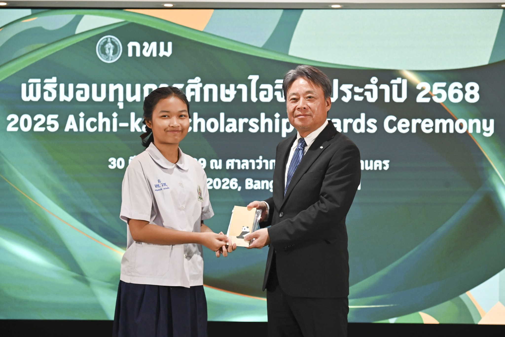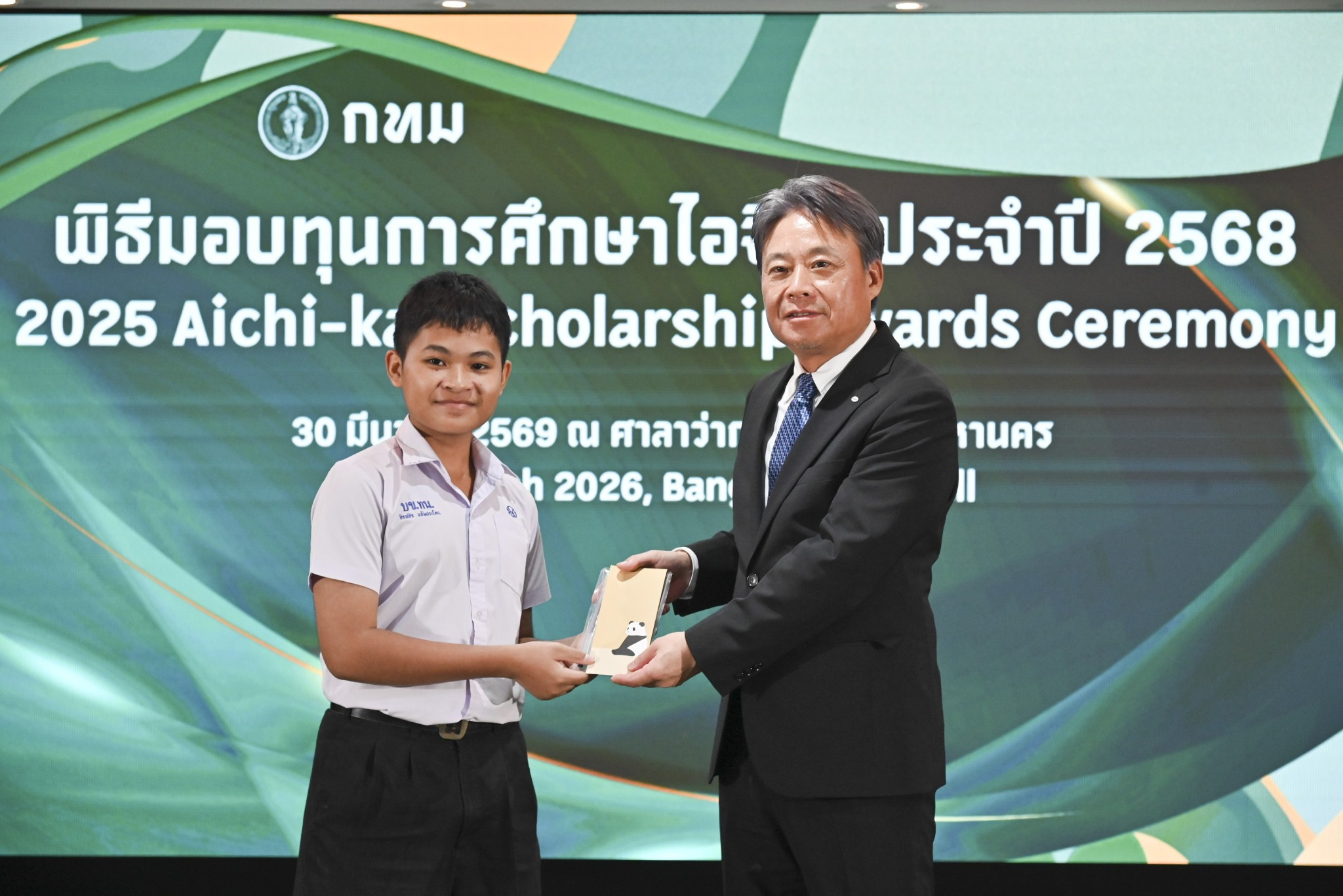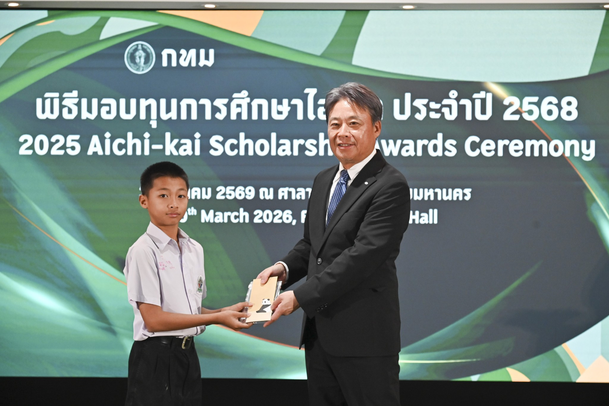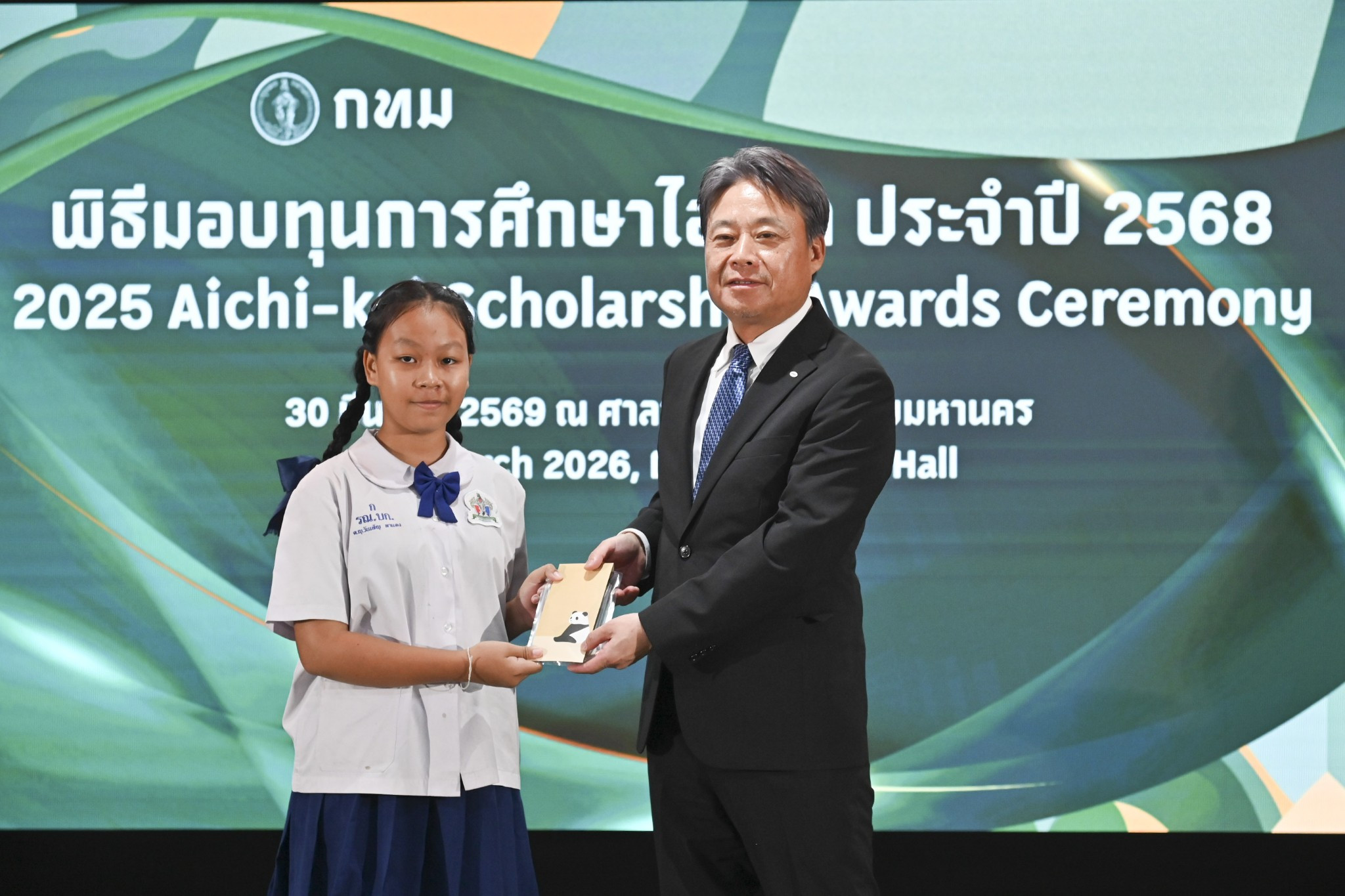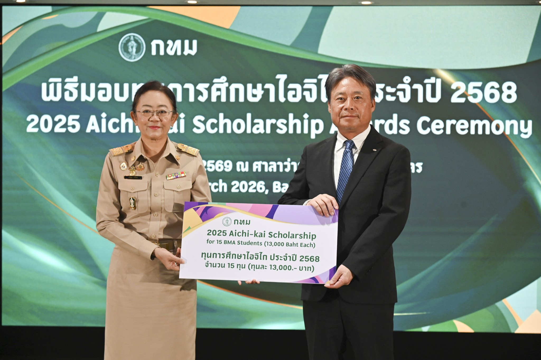 เมื่อวันที่ 30 มีนาคม 2569 เวลา 10.00 – 11.00 น. ณ ห้องรัตนโกสินทร์ ศาลาว่าการกรุงเทพมหานคร (เสาชิงช้า) สำนักงานการต่างประเทศ กรุงเทพมหานคร จัดพิธีมอบทุนการศึกษาไอจิไก ประจำปี 2568 โดยมีนางสาวอรัญญา พรไชยะ รองปลัดกรุงเทพมหานคร เป็นประธานในพิธี และมี คณะผู้บริหารกรุงเทพมหานคร ได้แก่ นายโกศล สิงหนาท รองผู้อำนวยการสำนักการศึกษา และนางจิราภรณ์ ปึงประวัติ ผู้อำนวยการสำนักงานการต่างประเทศ และข้าราชการจากสำนักงานการต่างประเทศ ร่วมให้การต้อนรับนายชินทาโร่ ทาเคอุจิ ประธานชมรมไอจิไก และคณะผู้บริหารชมรมฯ คณะครู ตลอดจนนักเรียนในสังกัดกรุงเทพมหานครที่ได้รับทุนจำนวน 15 คน โดยบรรยากาศเป็นไปอย่างอบอุ่นและเป็นกันเอง สะท้อนถึงความสัมพันธ์อันดีระหว่างประเทศไทยและประเทศญี่ปุ่น