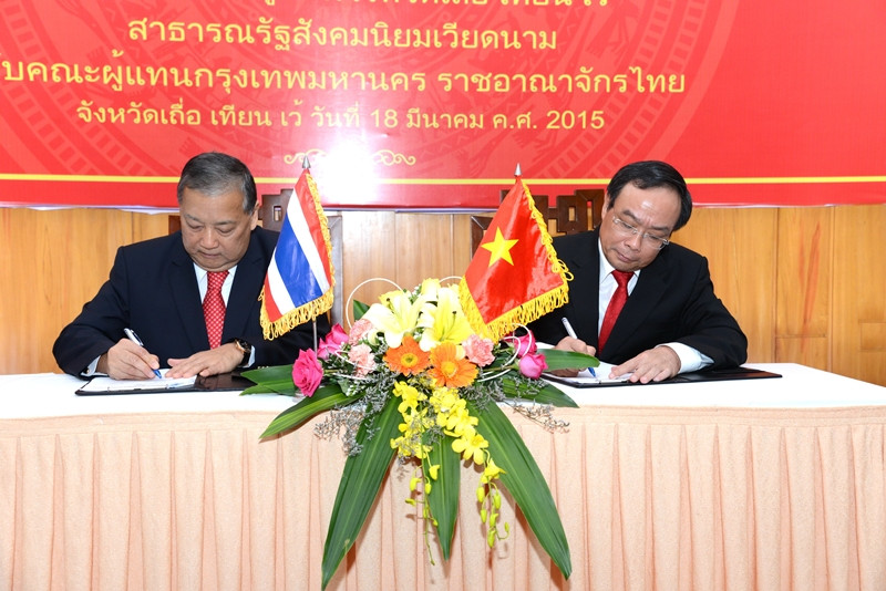 M.R. Sukhumbhand Paribatra, Governor of Bangkok, took BMA executives and local business owners to Thua Thien-Hue Province, Socialist Republic of Vietnam, during 18 – 20 March 2015. The delegation paid a courtesy call on H.E. Mr. Nguyen Van Cao, Thua Thien-Hue Province People's Committee Chairman, to promote cooperation on trade and investment, as well as the relations between Bangkok and Thua Thien-Hue Province.